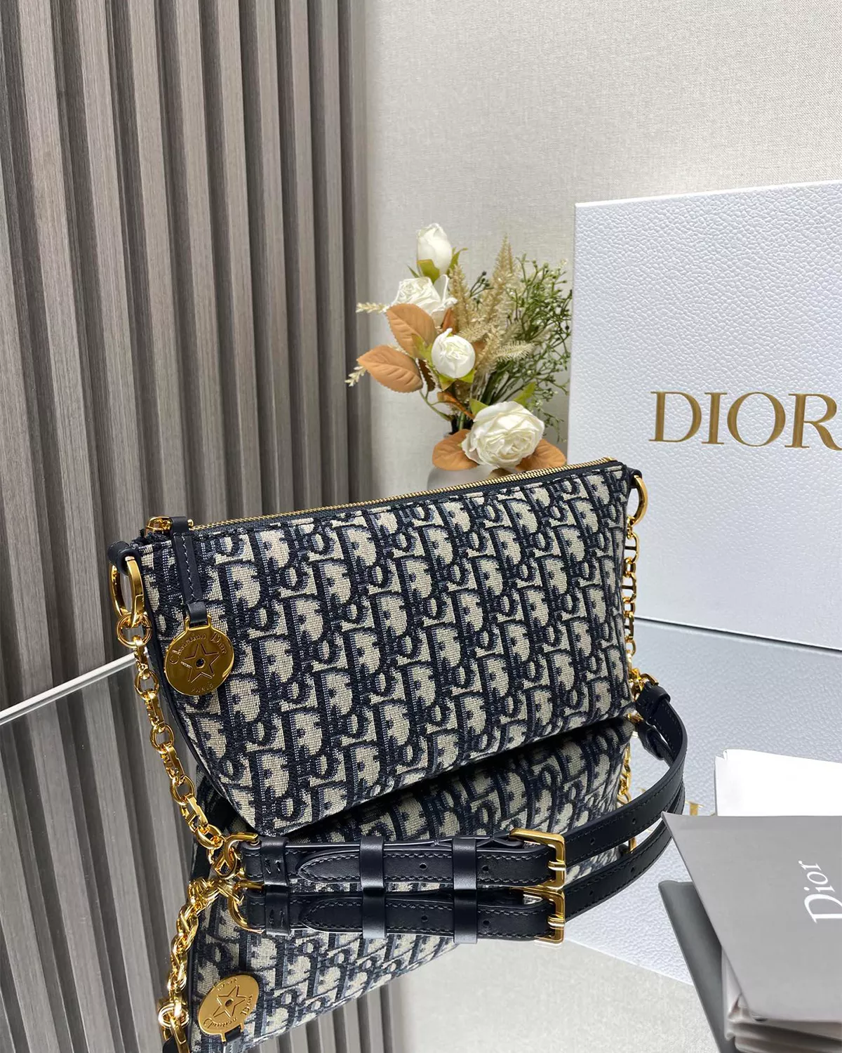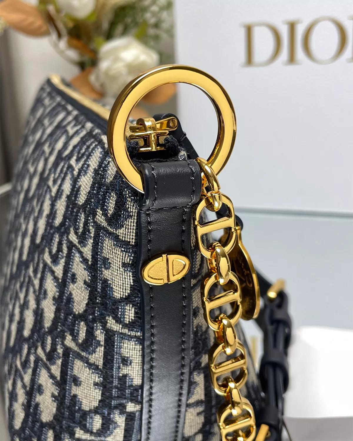 • Strap: Adjustable chain strap with leather insert