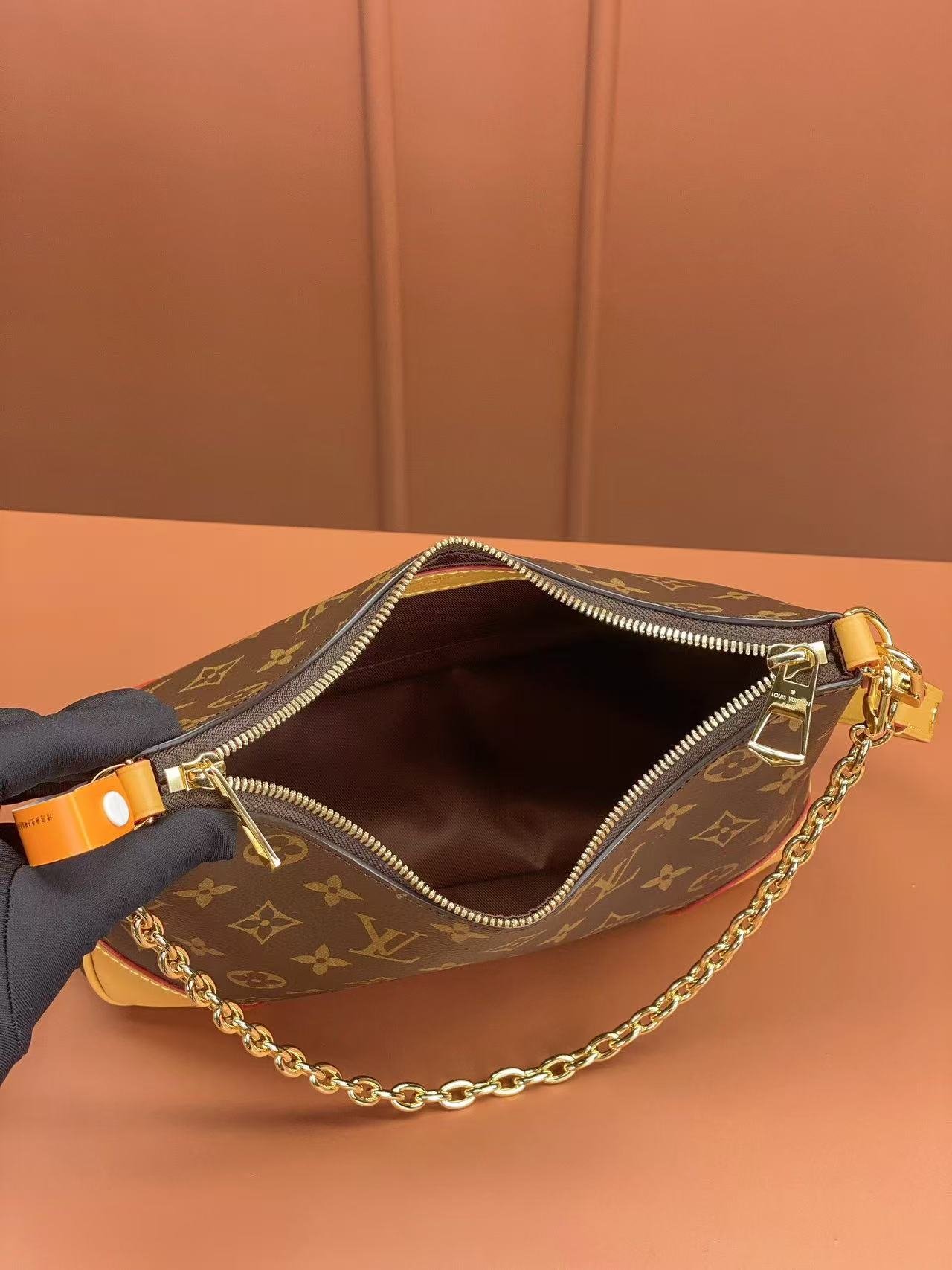 Crafted from classic Monogram coated canvas, this small Boulogne bag features dual zippers and a spacious interior patch pocket large enough for a smartphone. The removable and adjustable strap allows for multiple carrying options—shoulder or cross-body wear—while its removal transforms the piece into a chic chain-handle bag or clutch.
