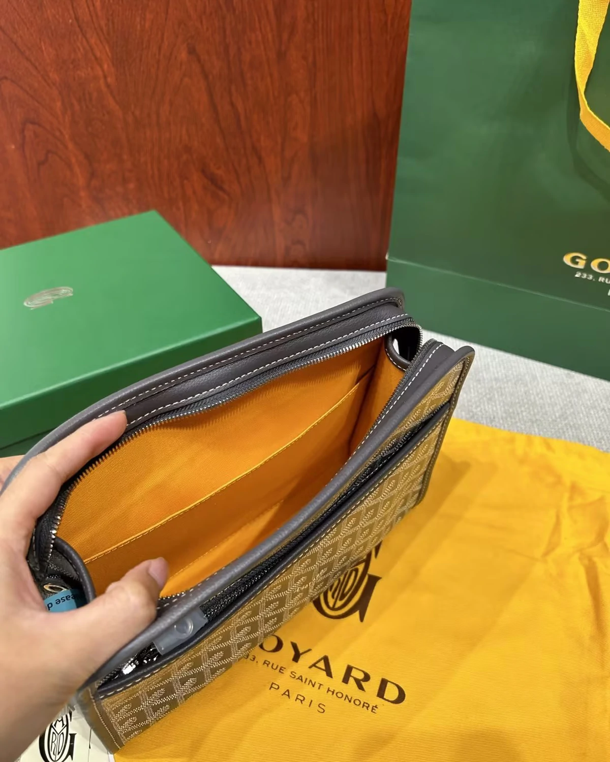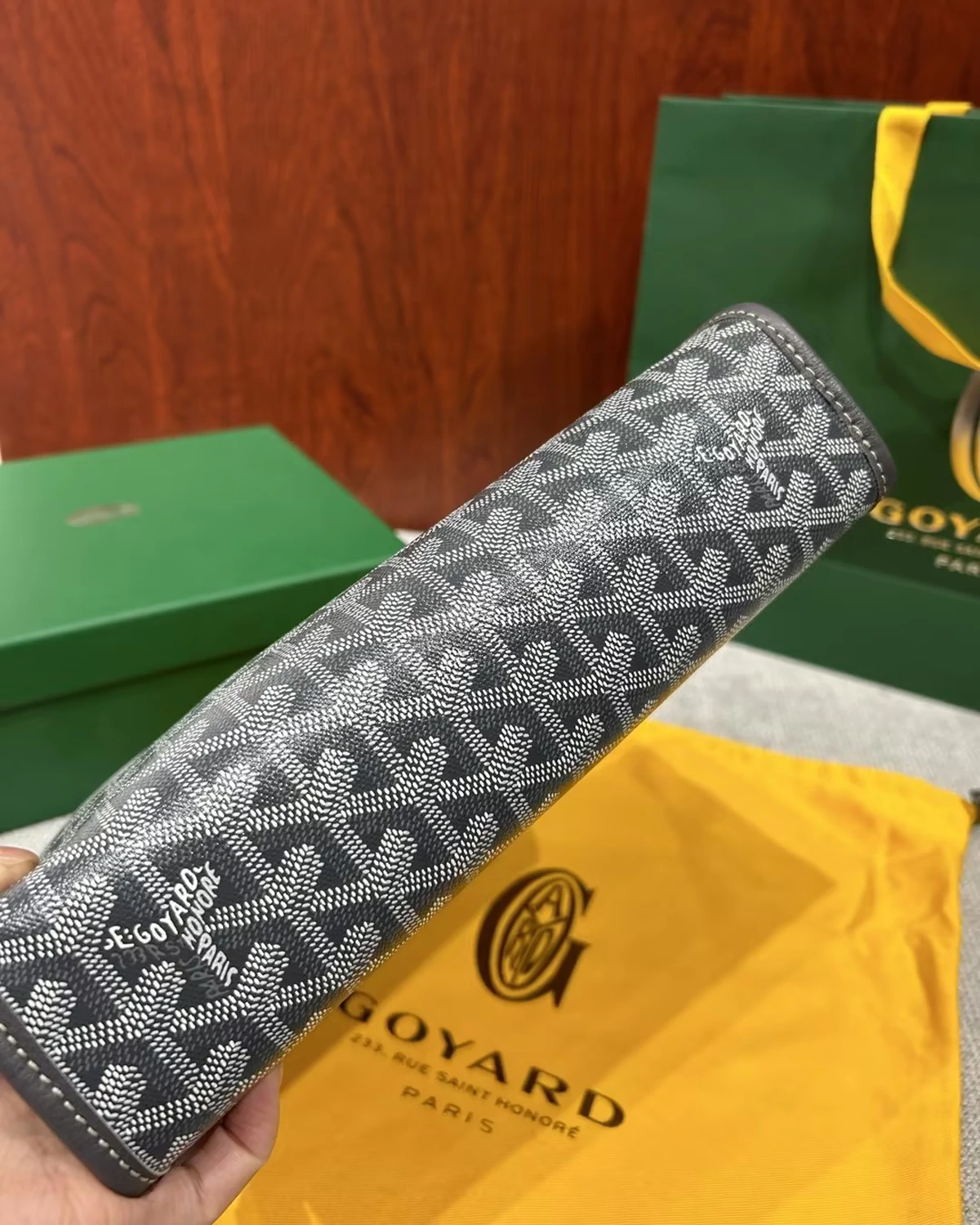 • Material: Goyardine chevron monogram canvas
