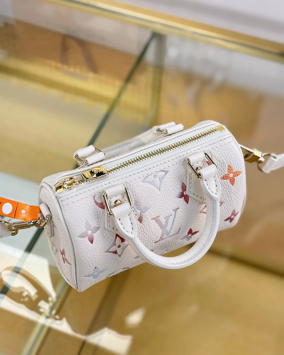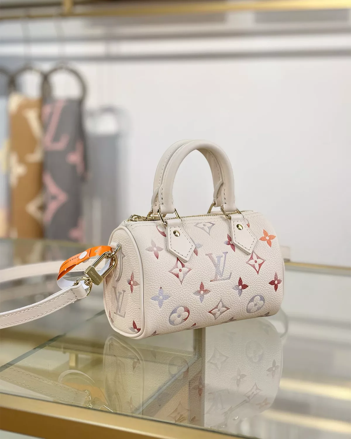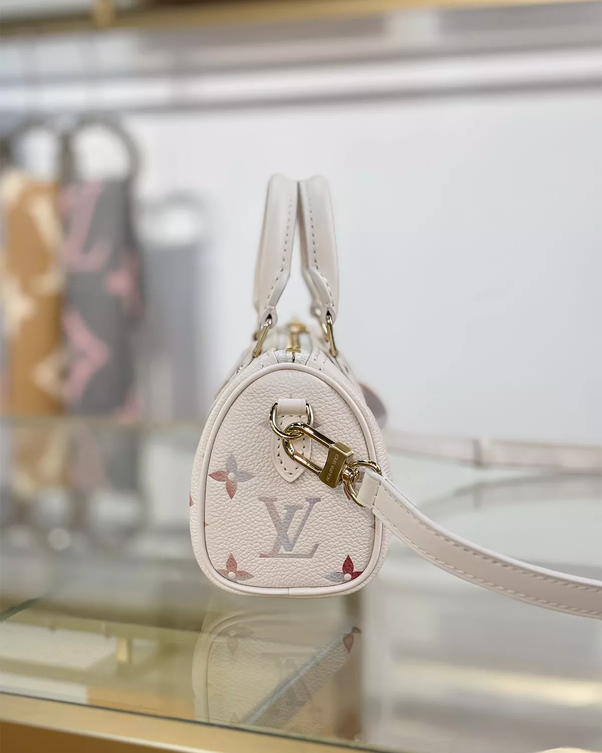 The Nano Speedy “Dream Beige” is a refined mini bag that elevates everyday style with timeless elegance. Crafted from embossed grained cowhide leather in a neutral Dream Beige tone, it’s accented with light gold-toned hardware for a sophisticated finish.