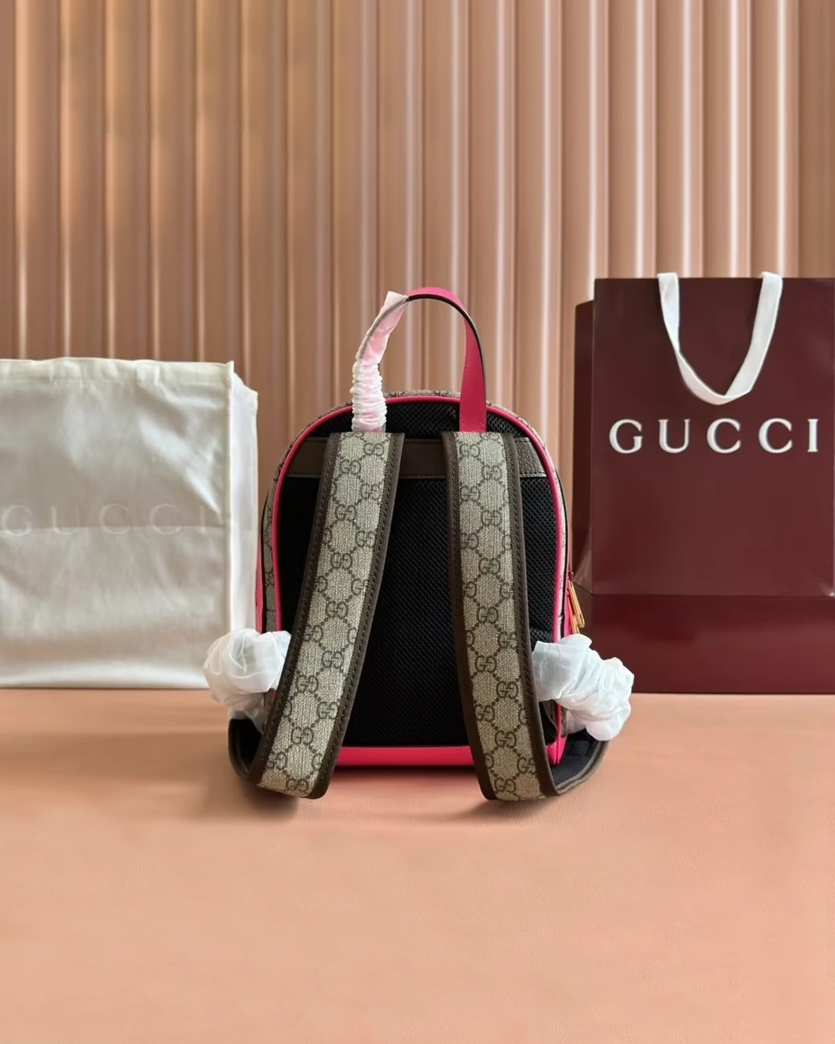 •Material: Beige GG Supreme canvas with pink leather details