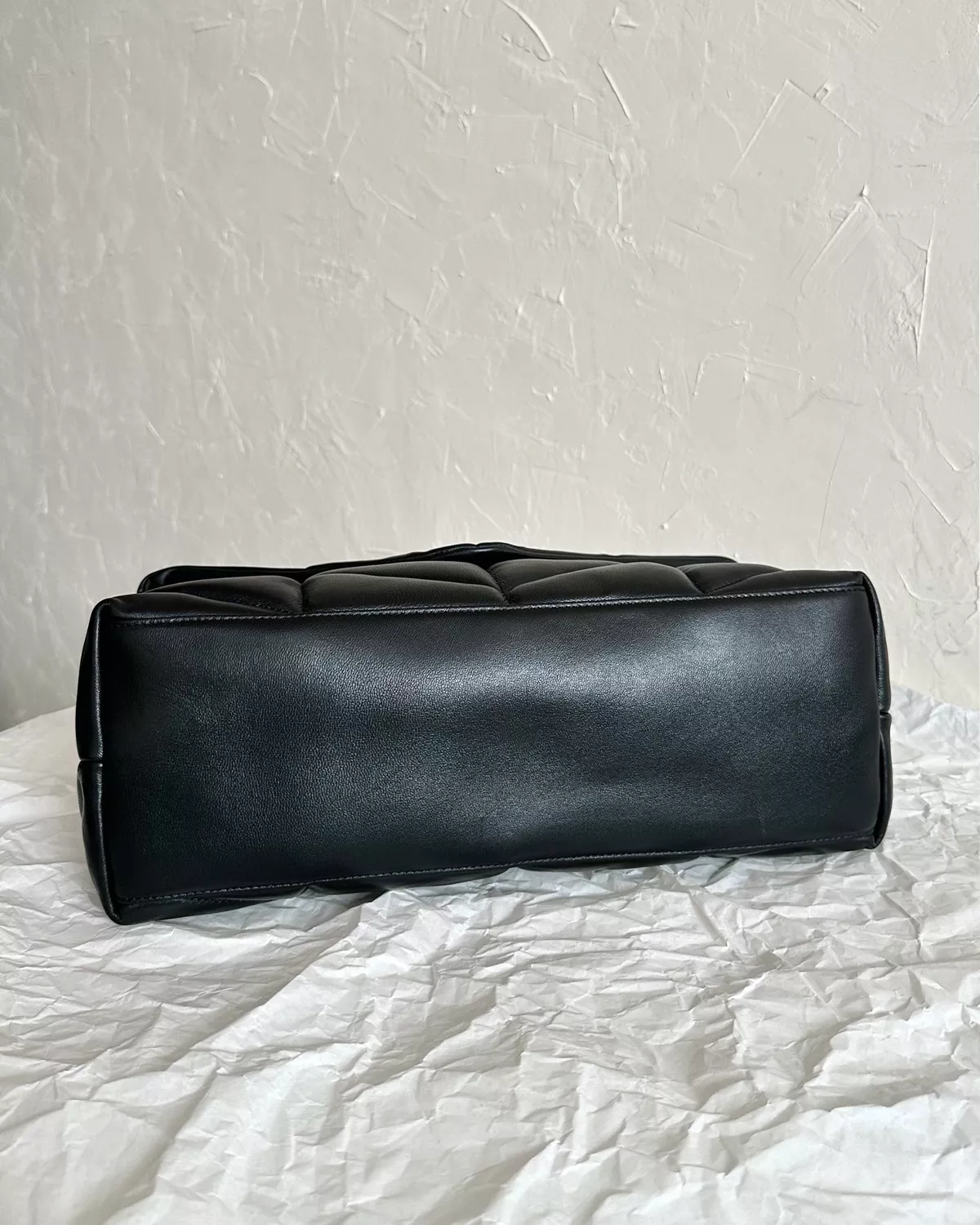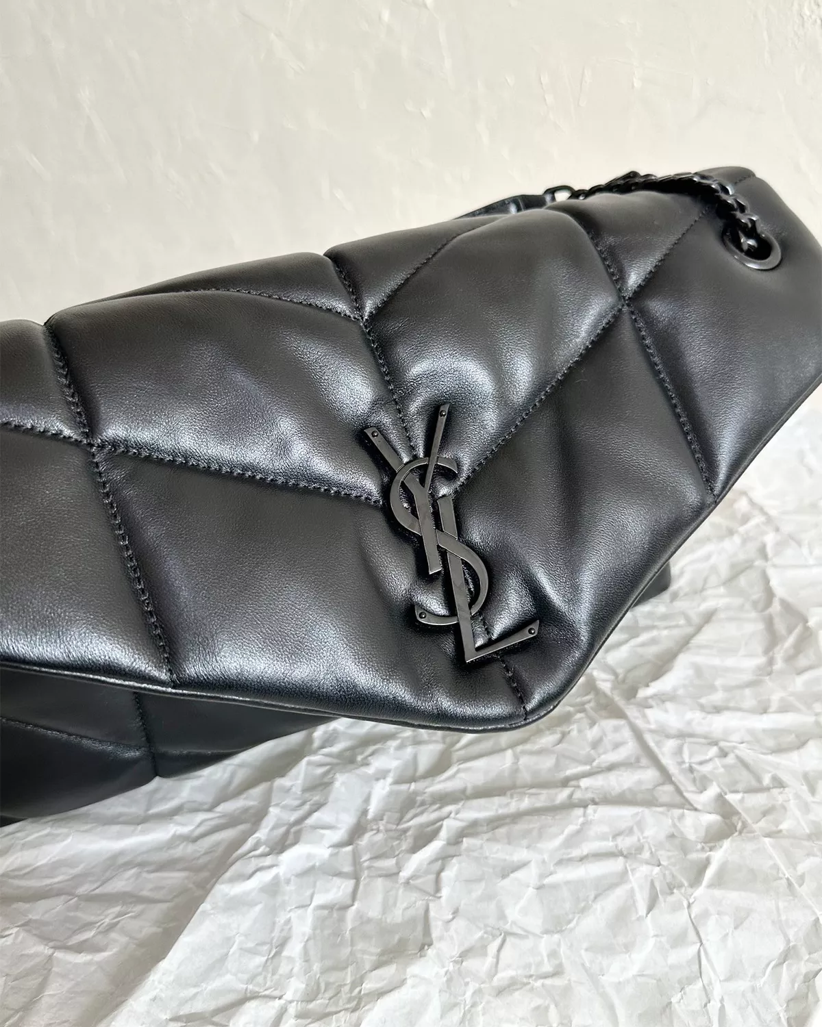 The Puffer LouLou Small “Black Lambskin Edition” is designed for those who appreciate soft luxury with a modern edge. Crafted from supple lambskin, this compact shoulder bag showcases a plush, quilted silhouette that delivers both comfort and contemporary style. Its smooth, fine textile lining and magnetic snap closure provide effortless everyday functionality.