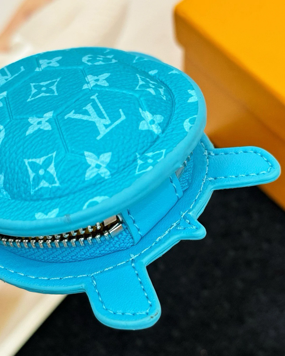 This playful turtle clutch returns with a fresh color scheme, crafted from Monogram canvas and leather, and featuring a palladium-finish snap closure for easy attachment to your bag. This vibrant and collectible item also serves as a convenient and practical organizer for storing small items such as earphones.