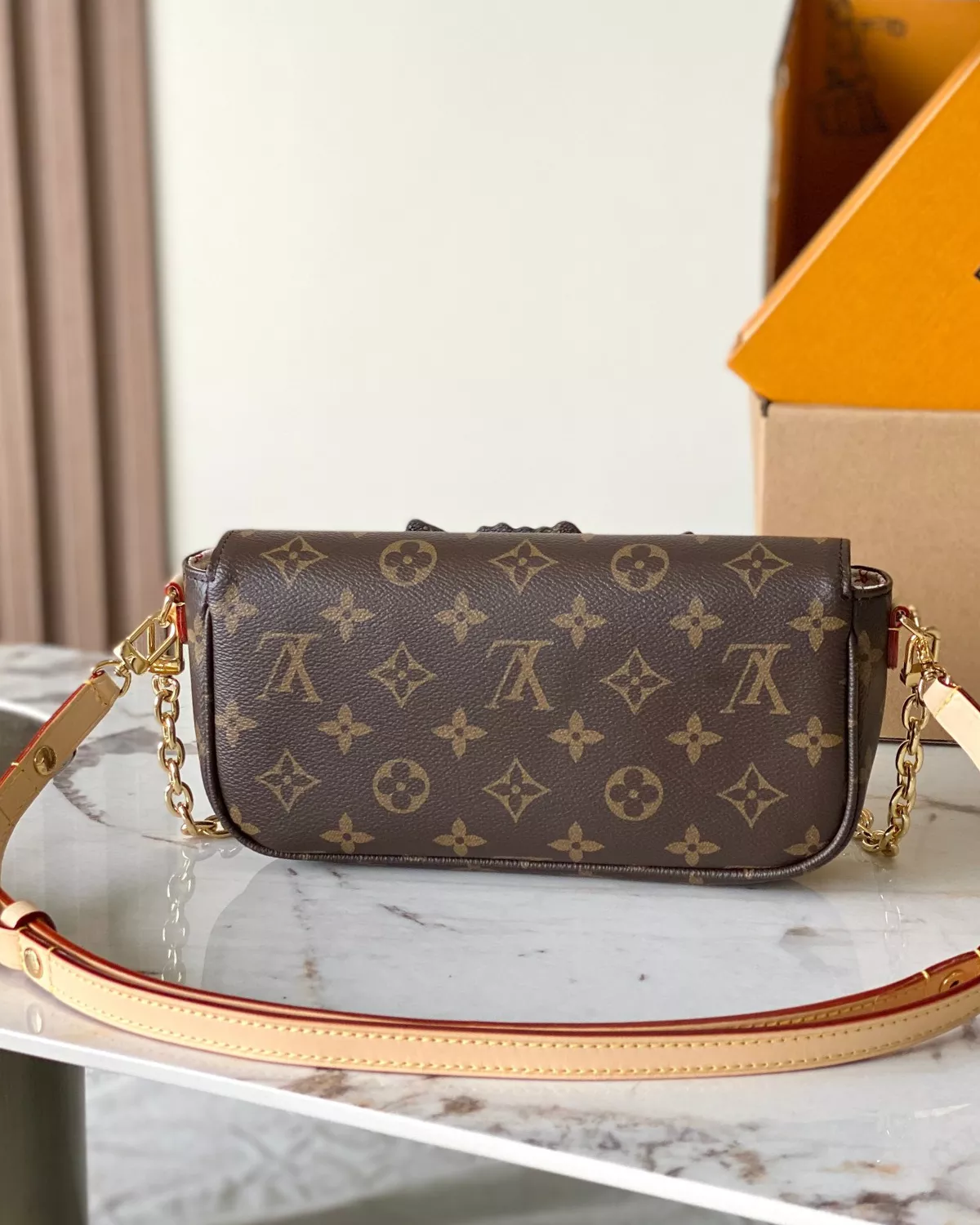 •Hardware: Gold-toned metal