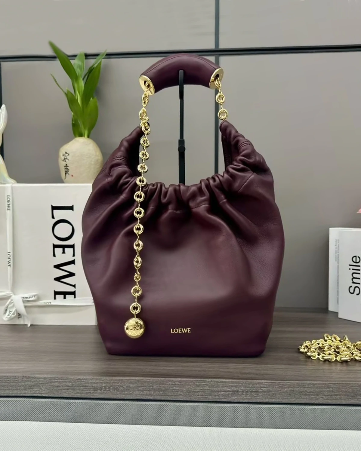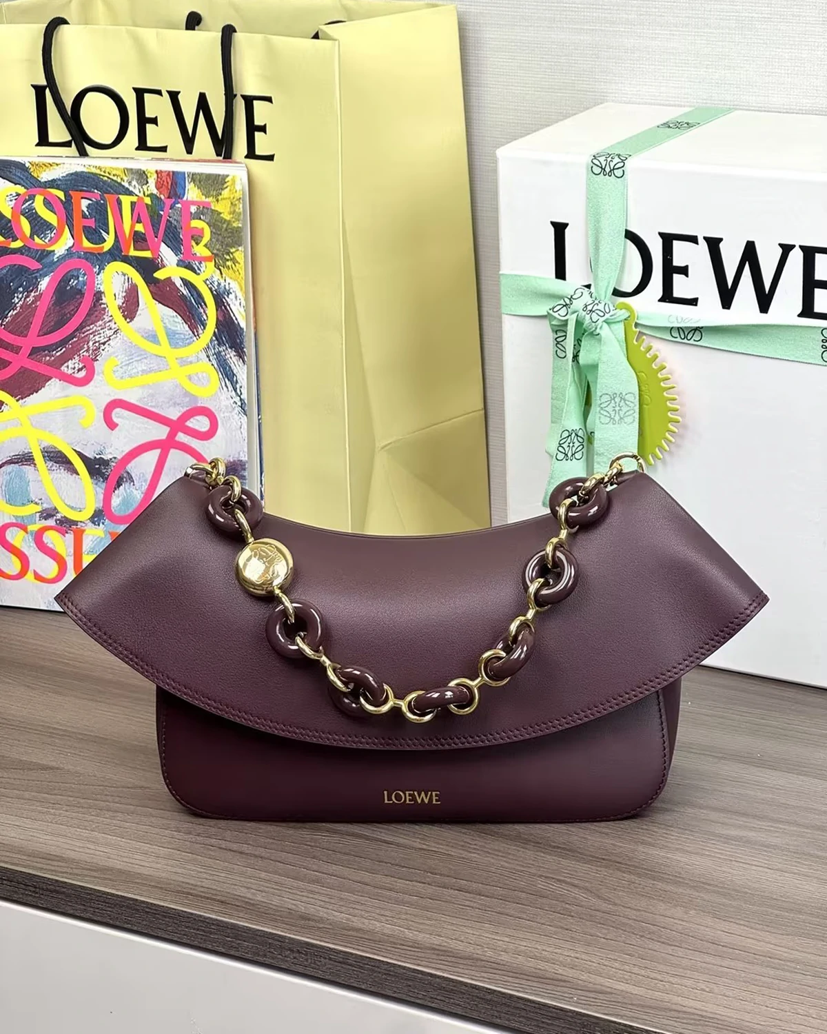 Medium Ola bag in smooth calfskin “Dark Burgundy”