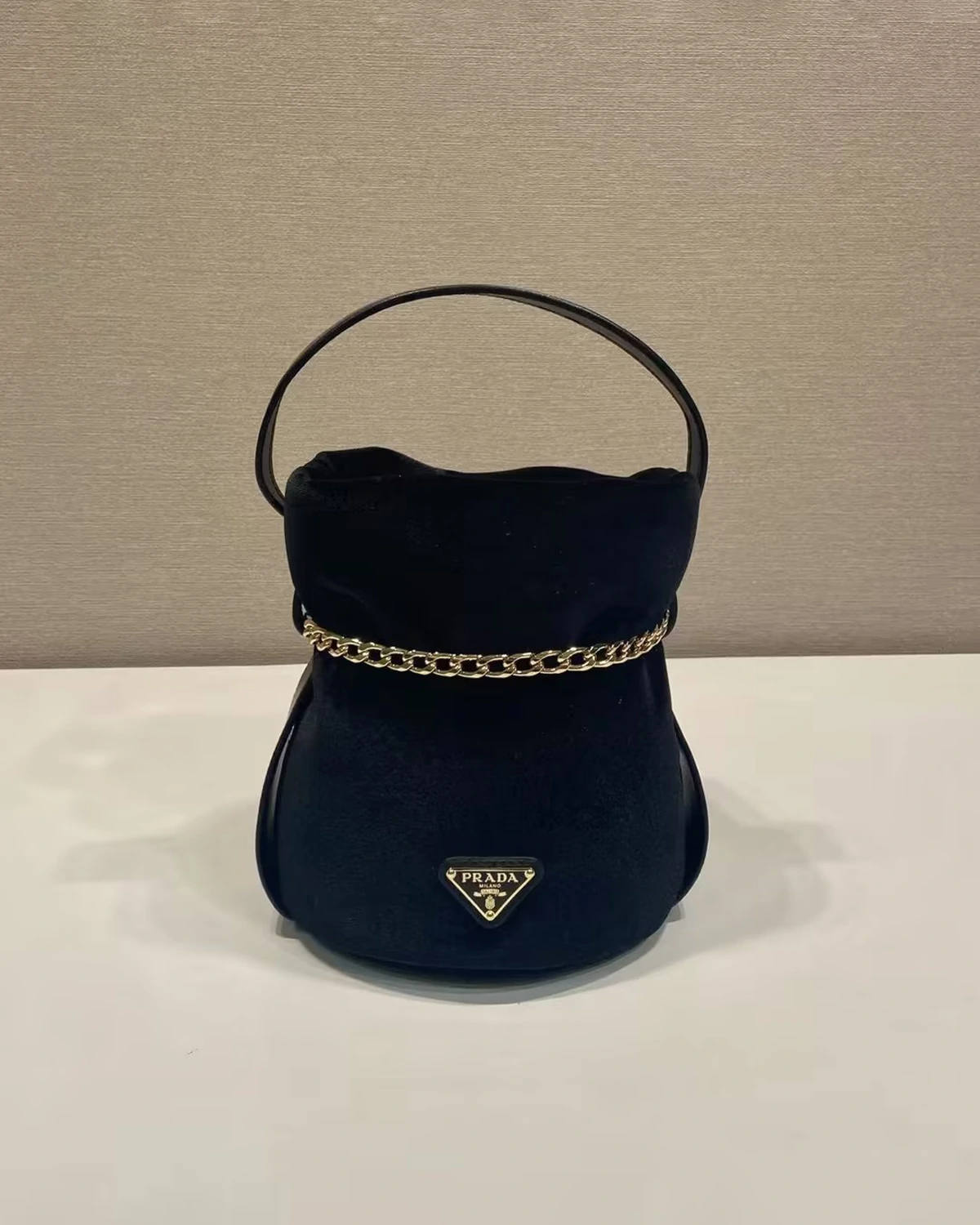 Petit Sac Noir mini velvet and nappa leather bucket bag “Black”