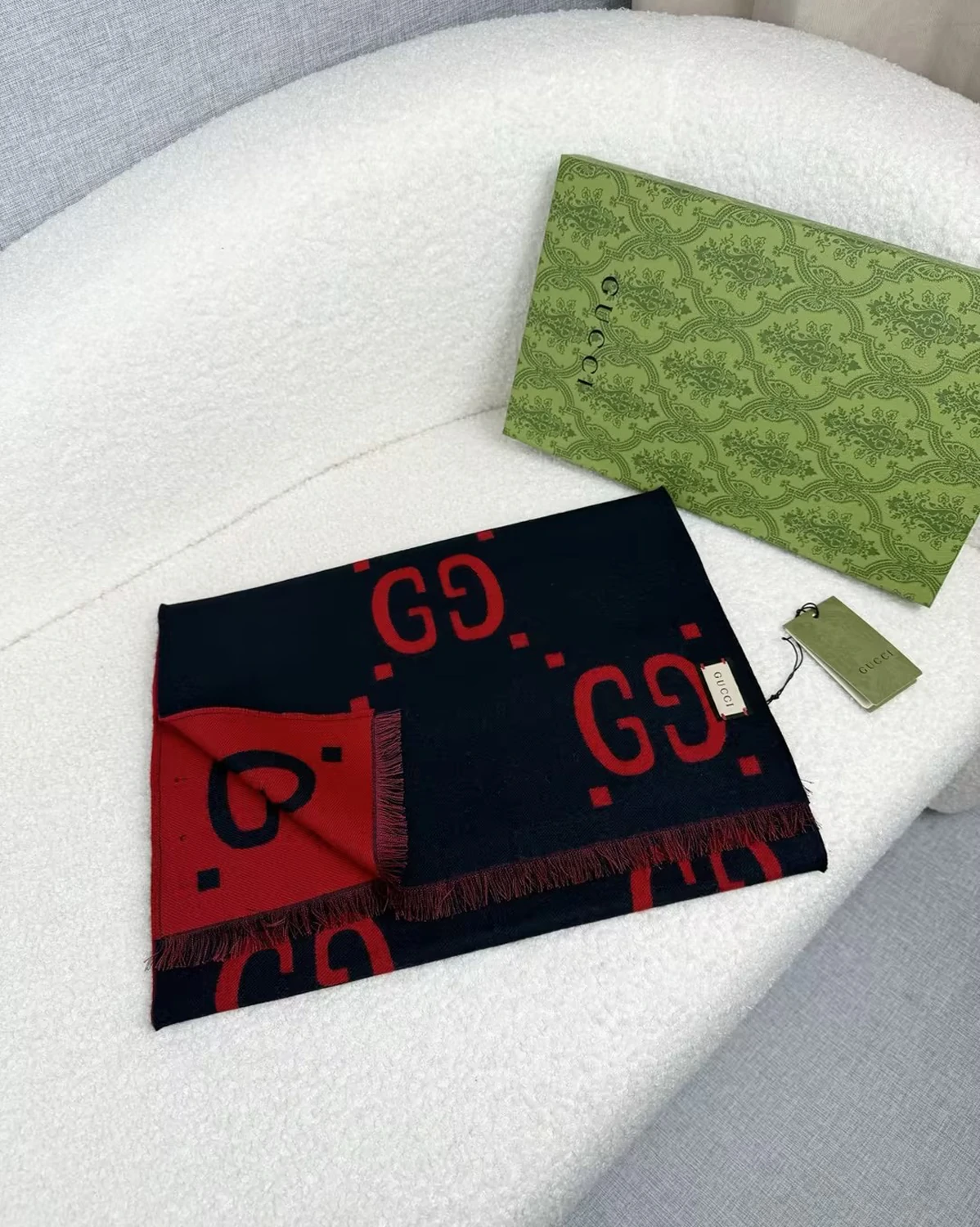 GG Jacquard Wool Silk Scarf “Blue Red”