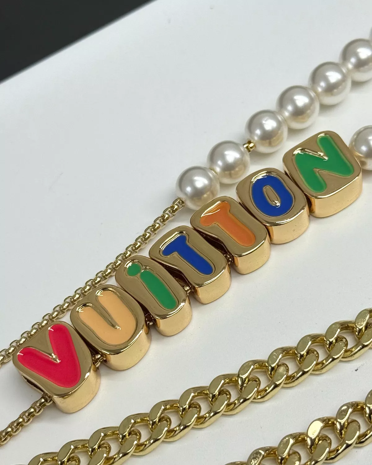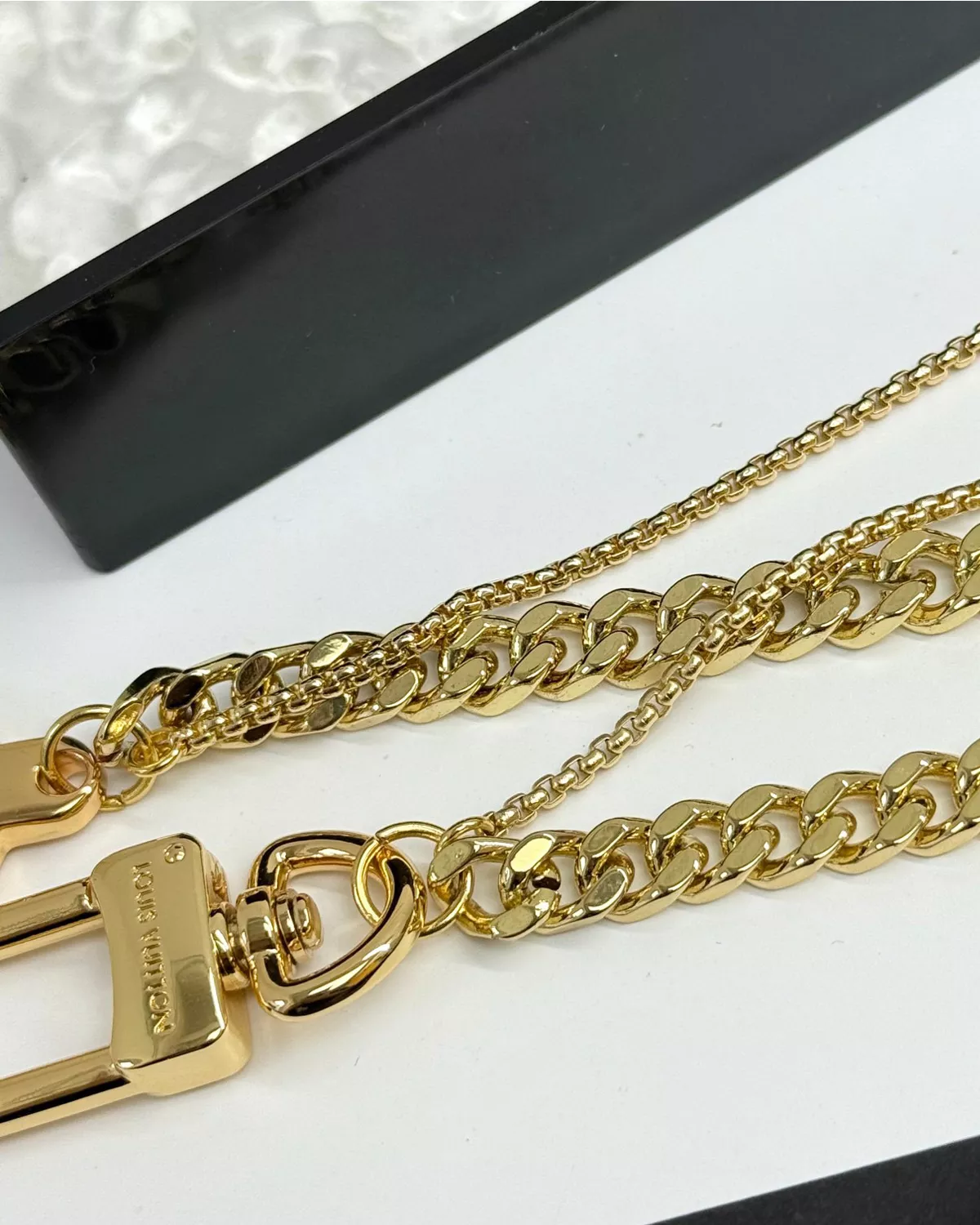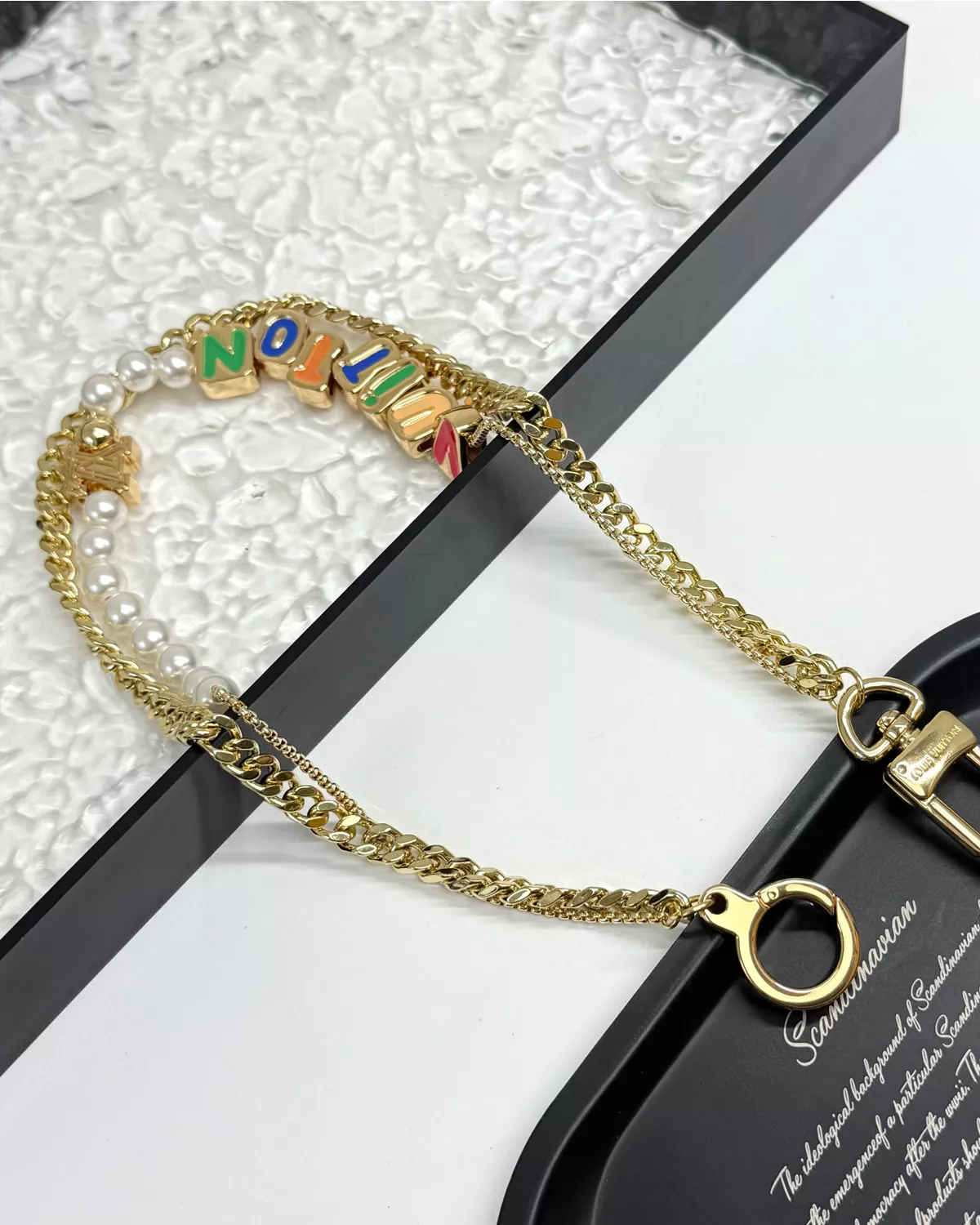 The Chain Beaded Waist Belt combines sophistication with a modern edge. Designed with a dual-chain structure, one strand features sleek metal links while the other showcases delicate glass beads forming decorative lettering. This eye-catching accessory effortlessly elevates casual jeans or tailored trousers with a statement accent.