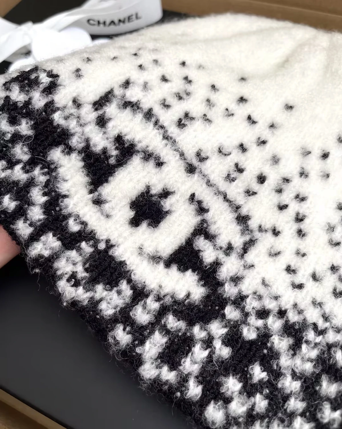 This black and white logo knit beanie is soft, comfortable, and a must-have for autumn and winter! The beanie features a classic double-C logo design with a striking black and white color contrast. The exquisite knitting craftsmanship and attention to detail make it both stylish and warm, easily complementing various outfits!