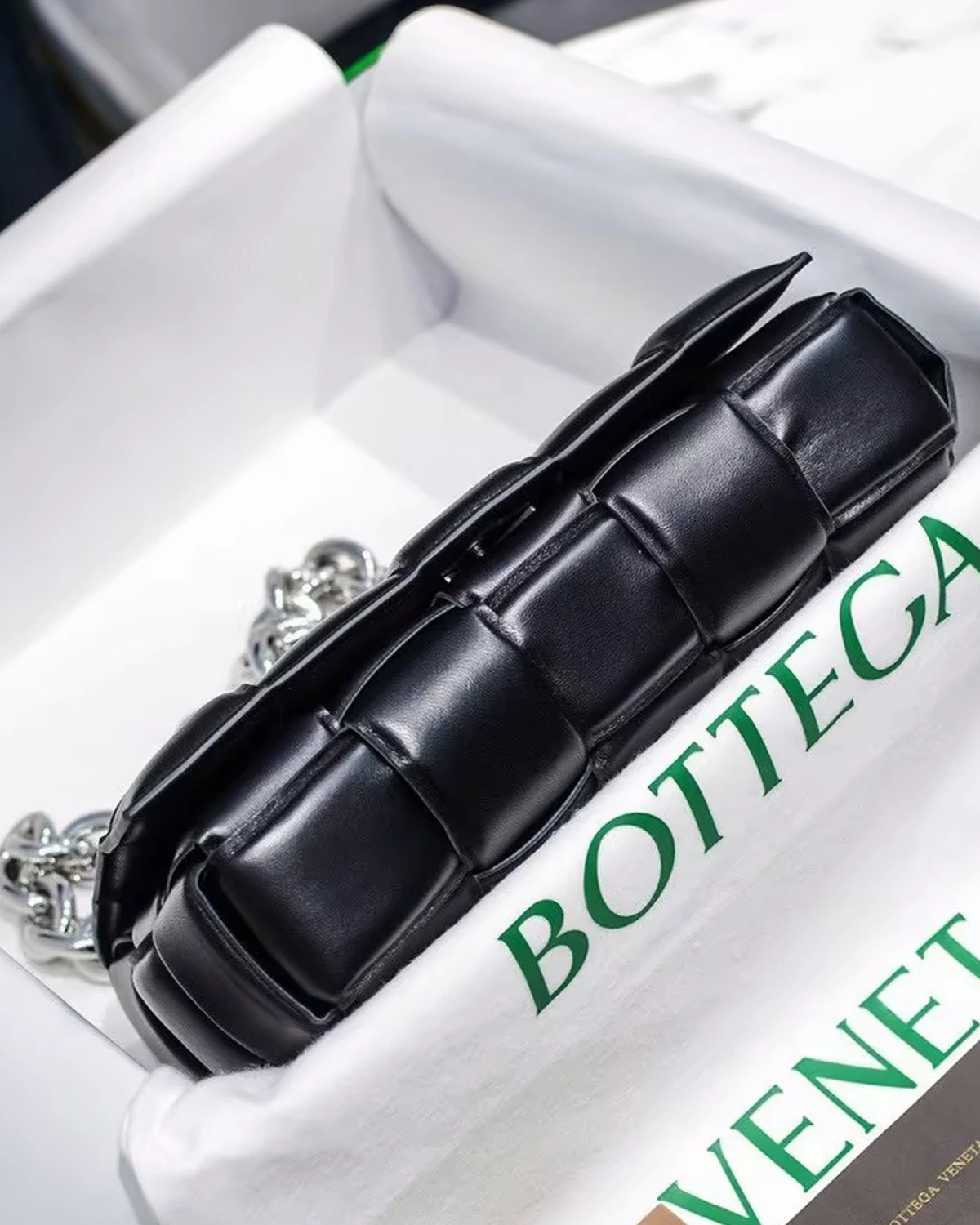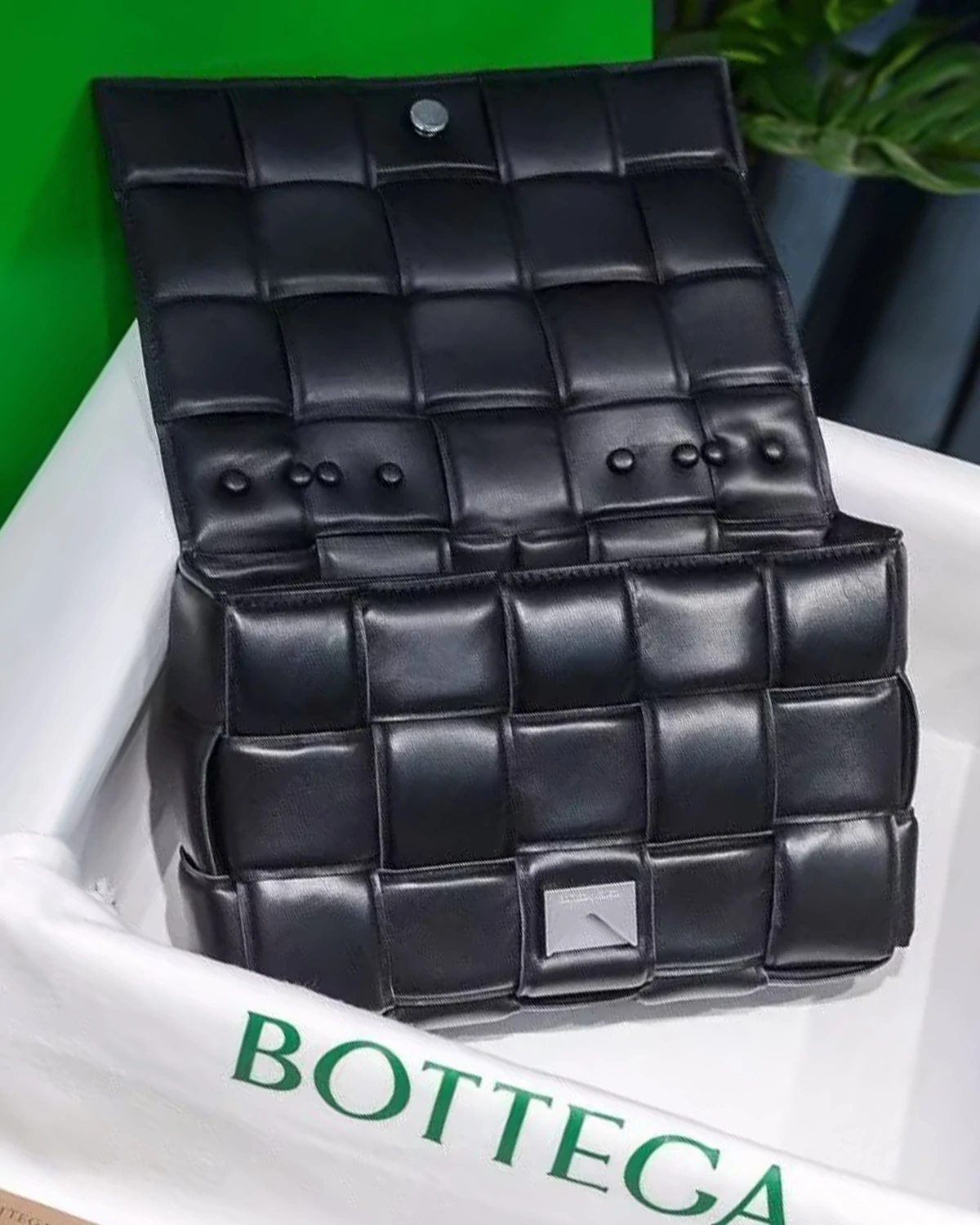 This quilted cassette bag boasts a uniquely soft and voluminous silhouette, presenting a full, rounded, pillow-like design. Its clean, flowing lines make it a versatile accessory suitable for various occasions. One of the signature elements of the quilted cassette bag is its distinctive intrecciato weave detail. This classic weaving technique is a hallmark feature, adding rich texture and visual depth to the bag.