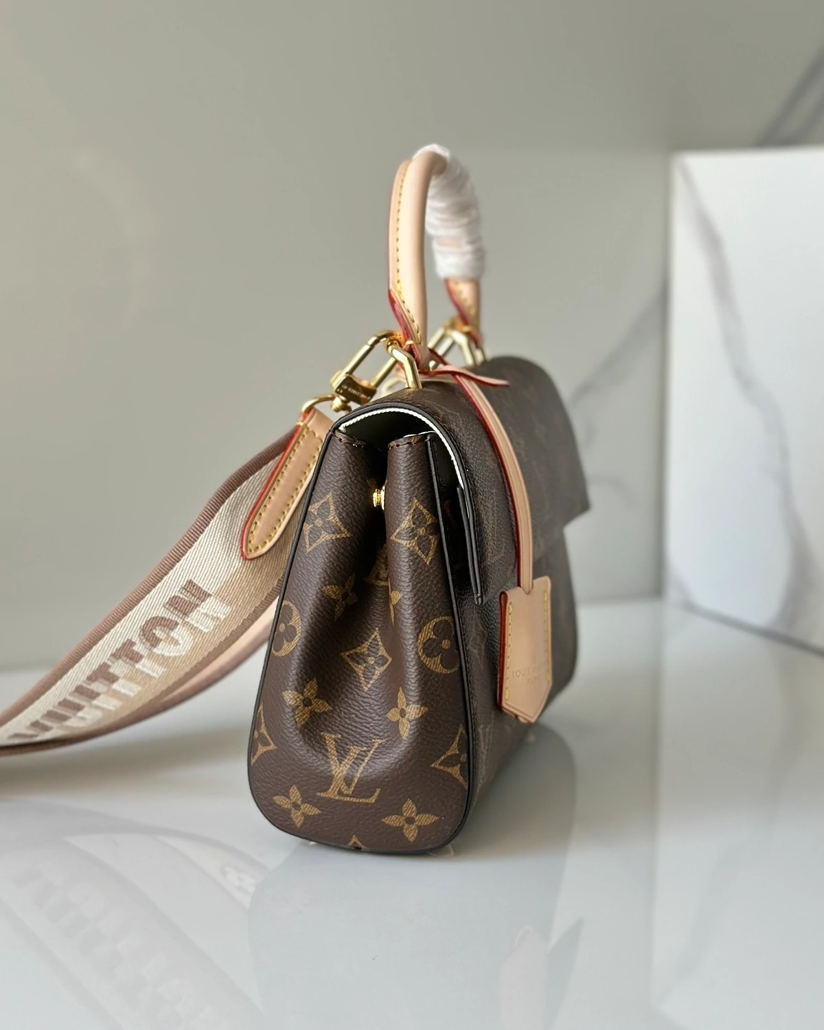 Made for brand enthusiasts, this adorable Cluny Mini bag is crafted from iconic Monogram canvas. It's the perfect everyday compact, featuring the signature Toron handle and a keychain crafted from the brand's signature natural leather. The detachable fabric shoulder strap, embellished with woven lettering, further enhances the bag's versatility.