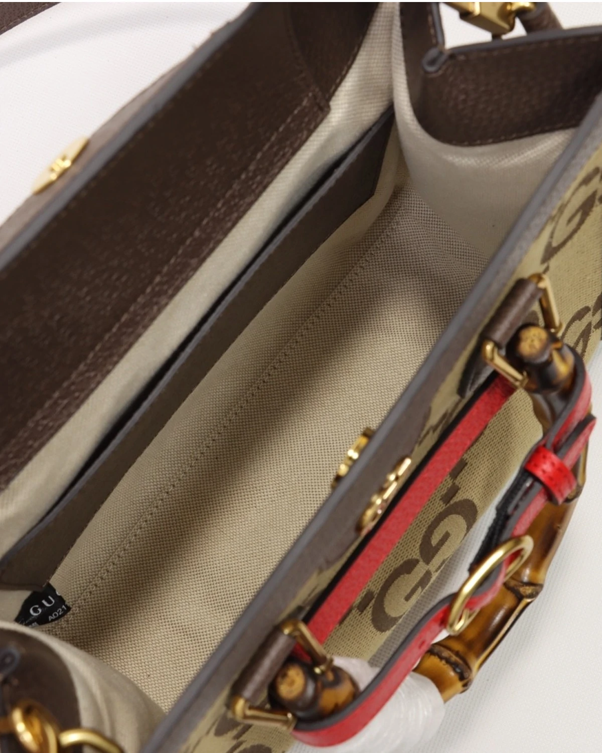 Original factory leather bamboo section medium handbag Gucci “Aria – Fashion Aria” series uses modern techniques to reinterpret classic elements. The bamboo section is one of Gucci’s classic elements, which has appeared in various series of the brand since the 1940s. After more than 80 years of development and evolution, this classic element is blended with black leather and presented in a new way on this small handbag. The handbag is also equipped with two leather straps that exude elegant and dignified classic temperament, while the striped woven strap shoulder strap highlights the strong brand connotation.