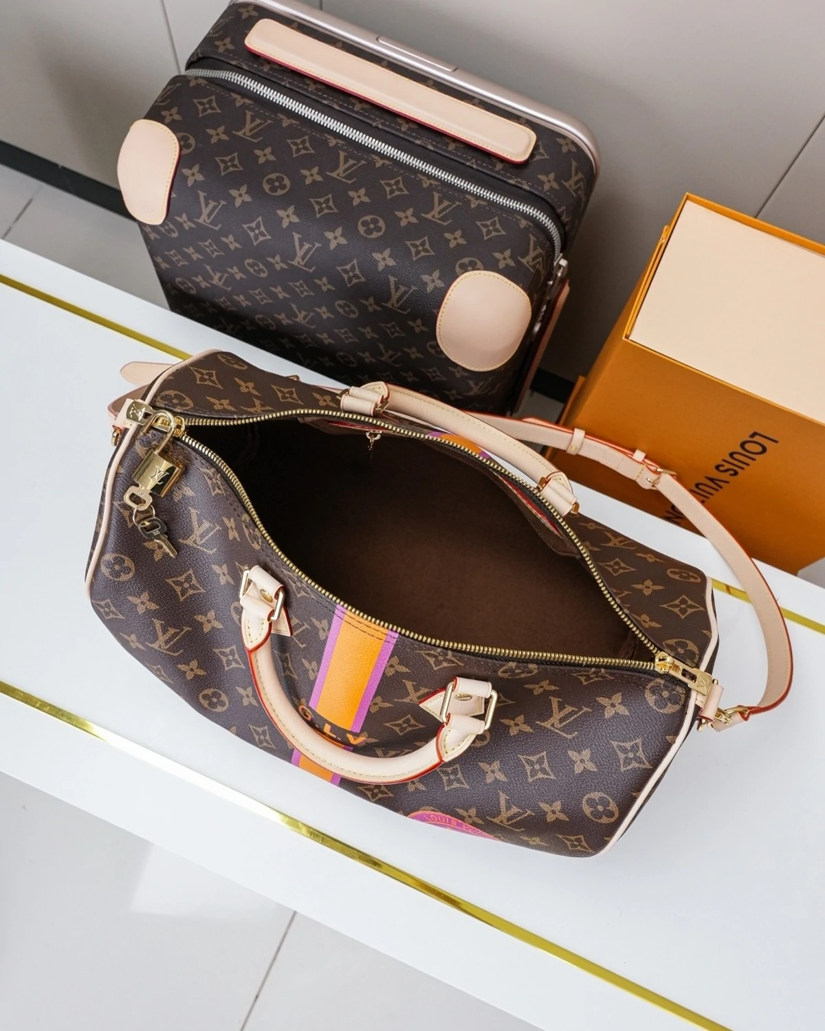 Originally designed for travelers in the 1930s, the Speedy handbag series derives its name from the rapidly developing metro system of the time. This Speedy Bandouliere 35 handbag recreates the iconic silhouette in Monogram canvas, while roll-stamped leather handles, an engraved padlock, and a detachable shoulder strap continue the classic details, easily accommodating the essentials of urban life. Customization options from the Mon Monogram series can be added to express your personal style.