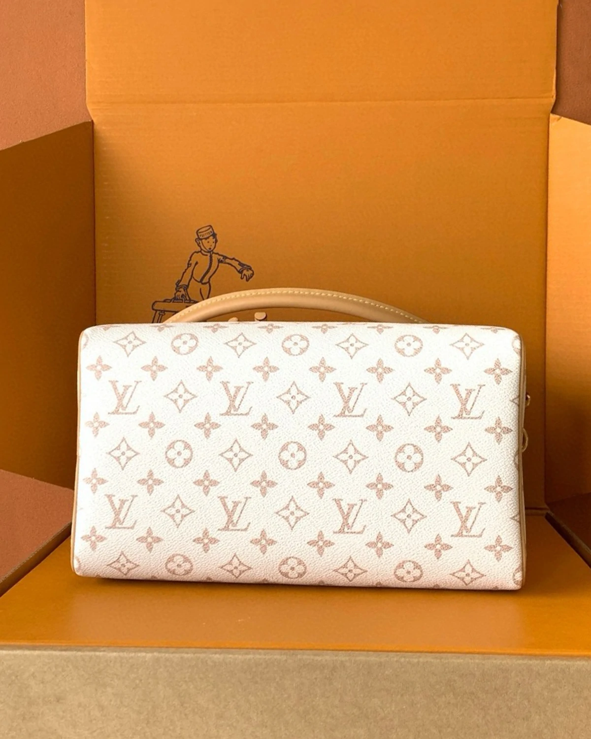 The iconic Speedy Soft 30 Lucky is reinvented with jewel-like embellishments and a contrasting pastel-pink lining to enhance its attention to detail. It is crafted from Monogram Dune canvas with VVN leather trims and is adorned with gold-toned hardware, plus a unique talisman charm and colorful rope knot. Capaciously sized, the versatile design is roomy enough to store a tablet as well as other daily essentials.