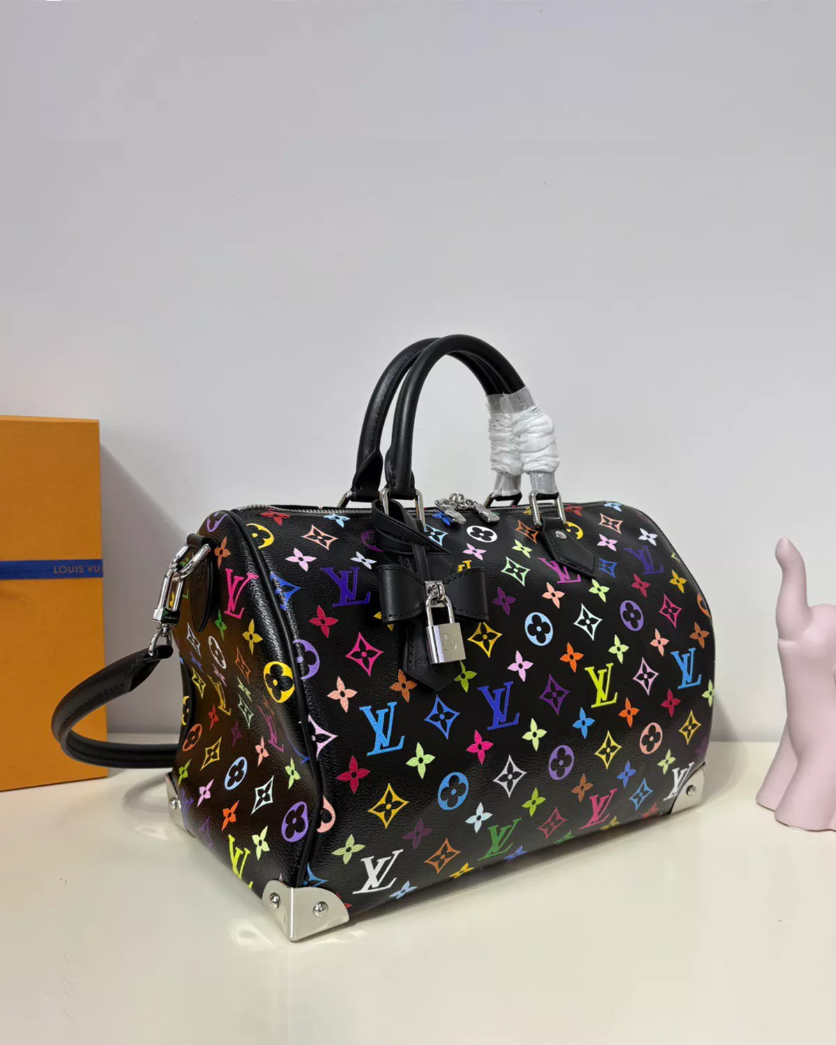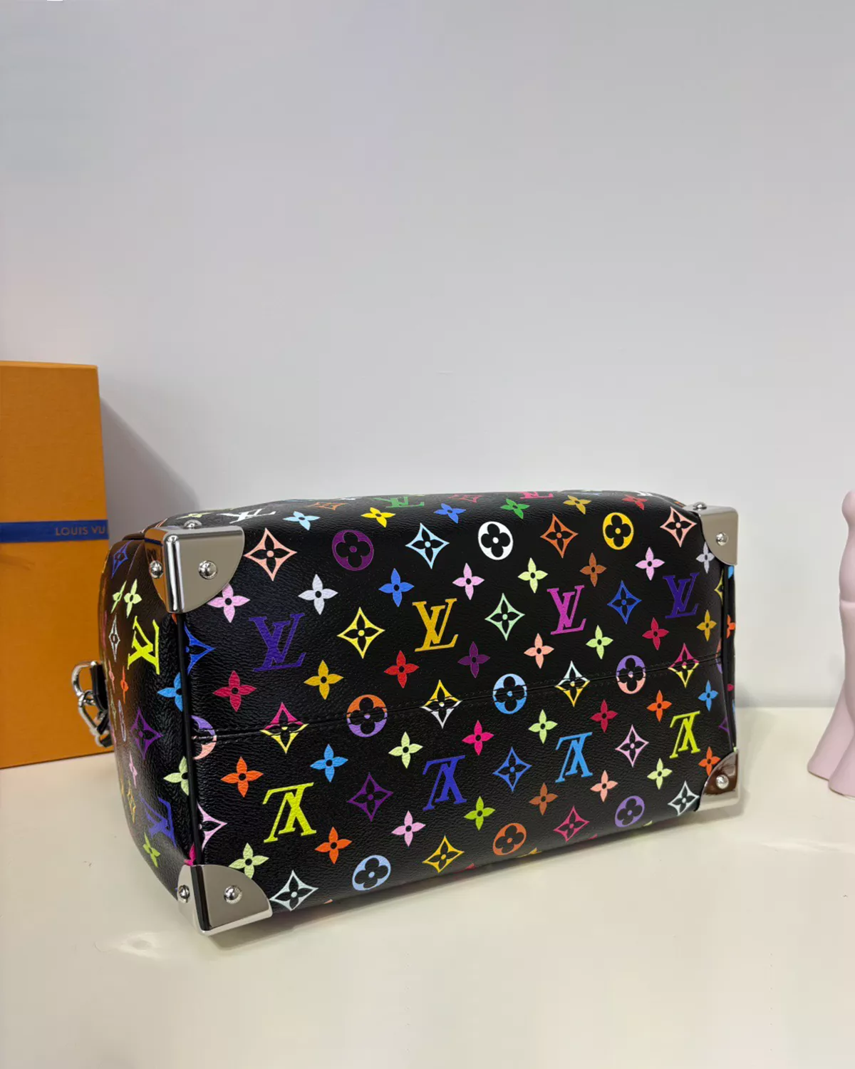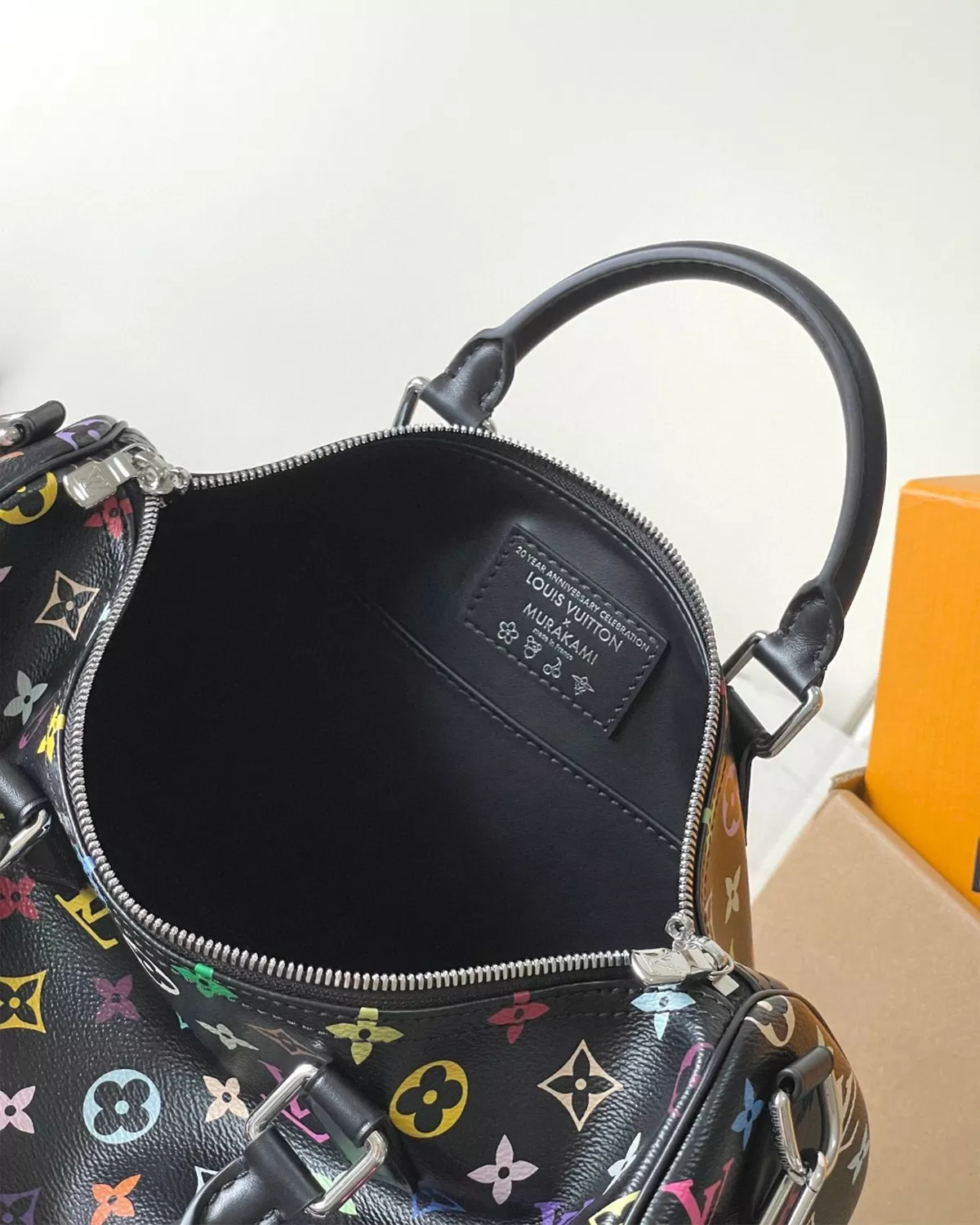 Celebrate bold design with the riuce Speedy Soft 30 “LV x TM Rainbow Monogram”, a limited-edition piece from the Murakami Cherry & Rainbow Collection. Crafted from multicolored Monogram coated canvas, this travel-friendly bag is finished with calf leather trims, silver-toned hardware, and heritage-inspired metallic corners. The playful bow-shaped keybell with padlock adds a unique signature twist. With space for your smartphone, wallet, and daily essentials, it combines functionality with artistic flair—perfect for collectors and style enthusiasts alike.