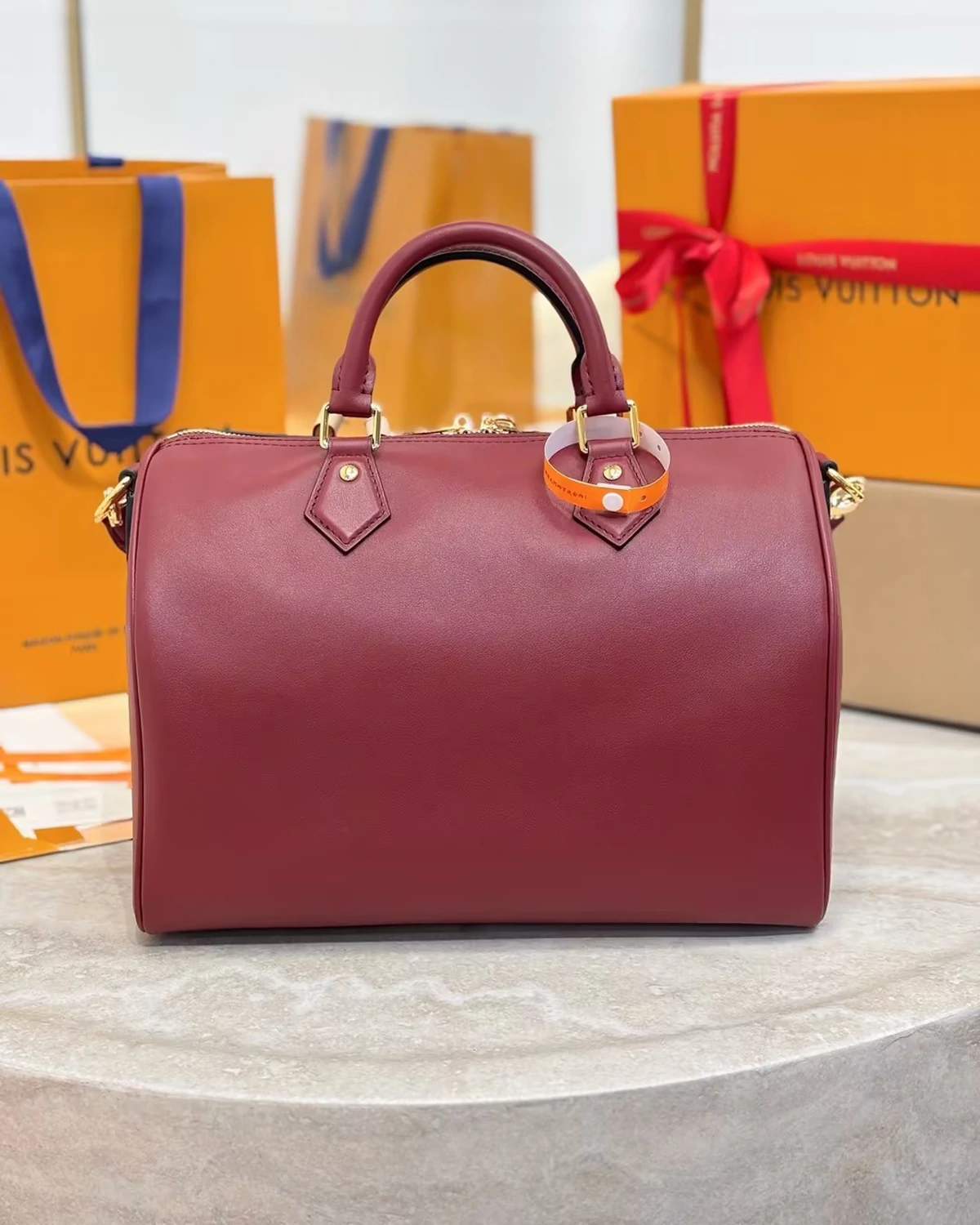 The Speedy Soft 30 “Plum” is part of the exclusive Travels With Grace Coddington collection, reimagining the iconic Speedy silhouette with a playful yet refined spirit. Crafted from supple calfskin leather in a rich Plum shade, the design is elevated with gold-toned hardware and charming signature details.