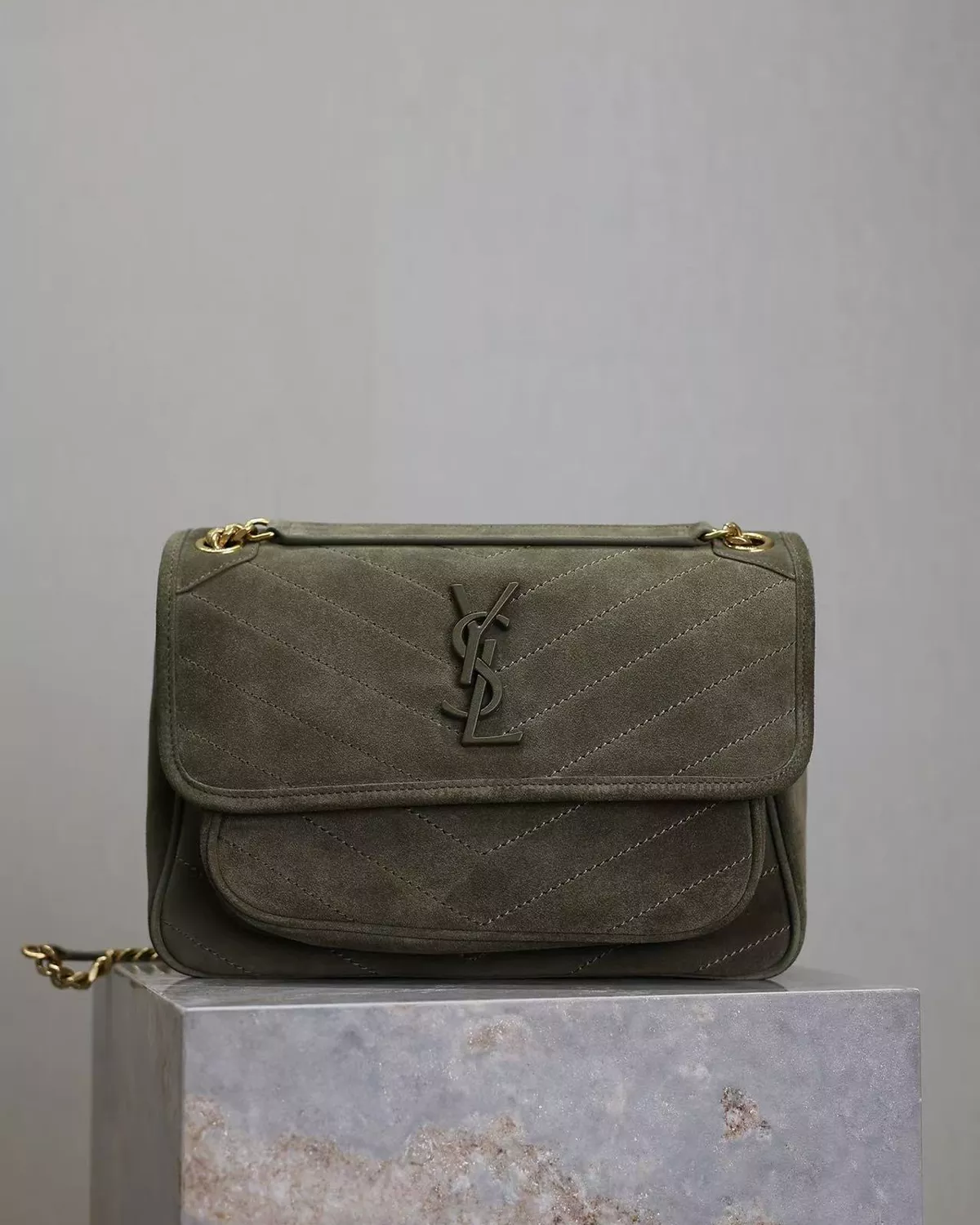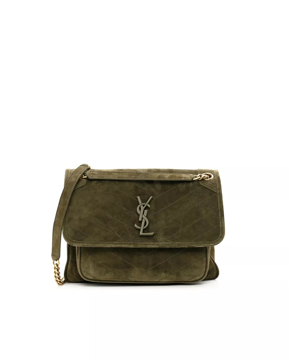 Suede Monogram Medium Chain Satchel “Loden Green”