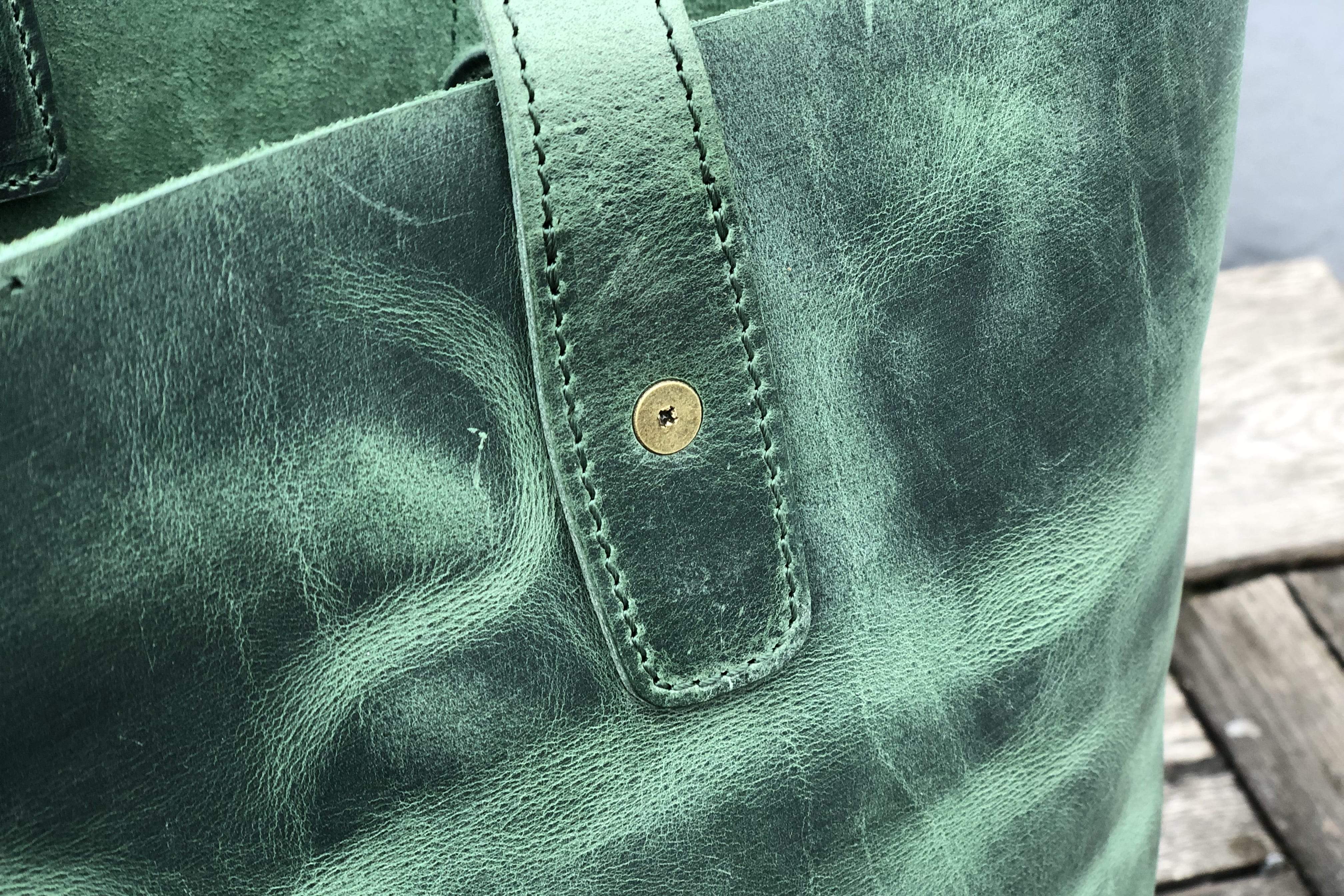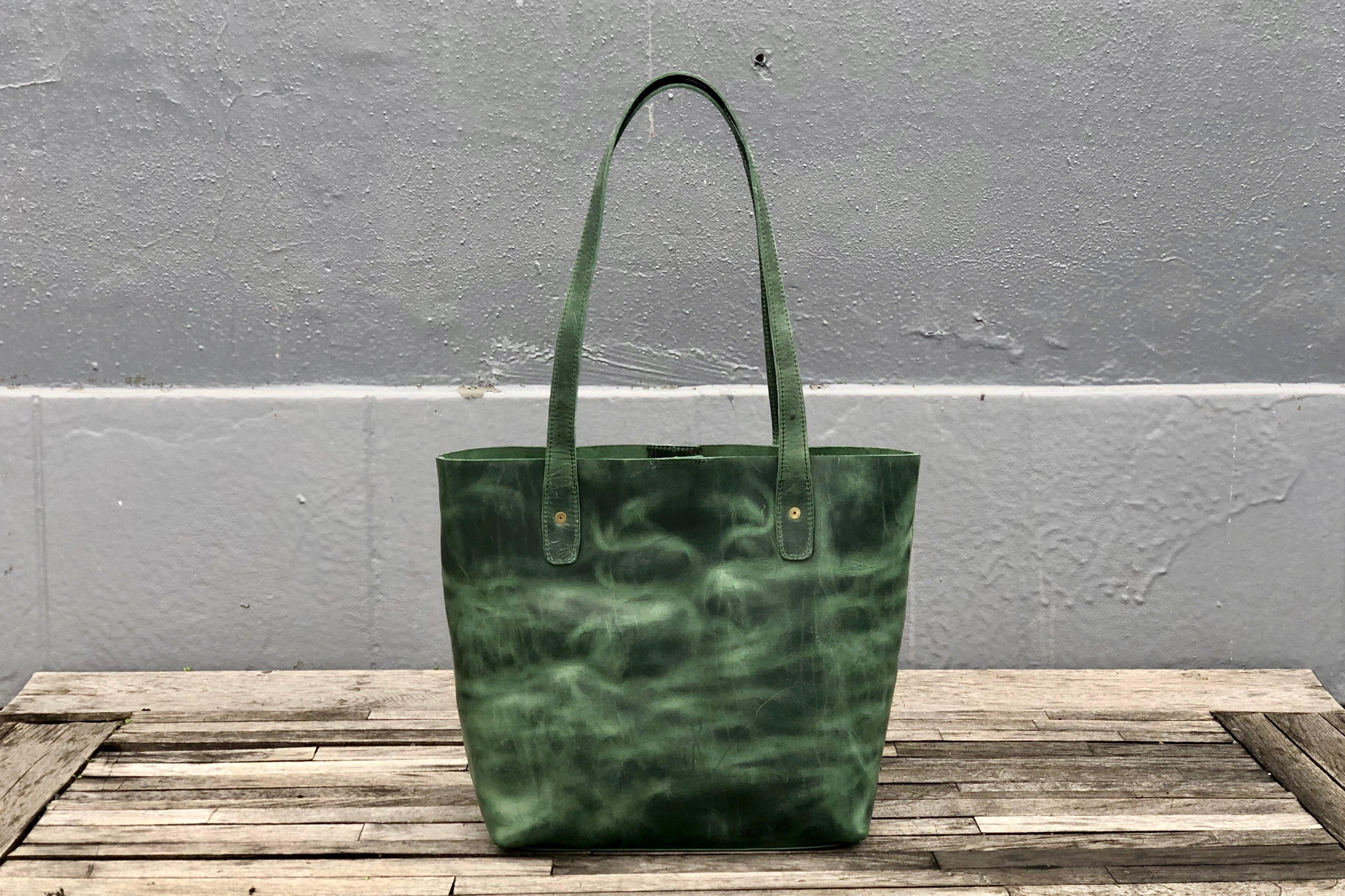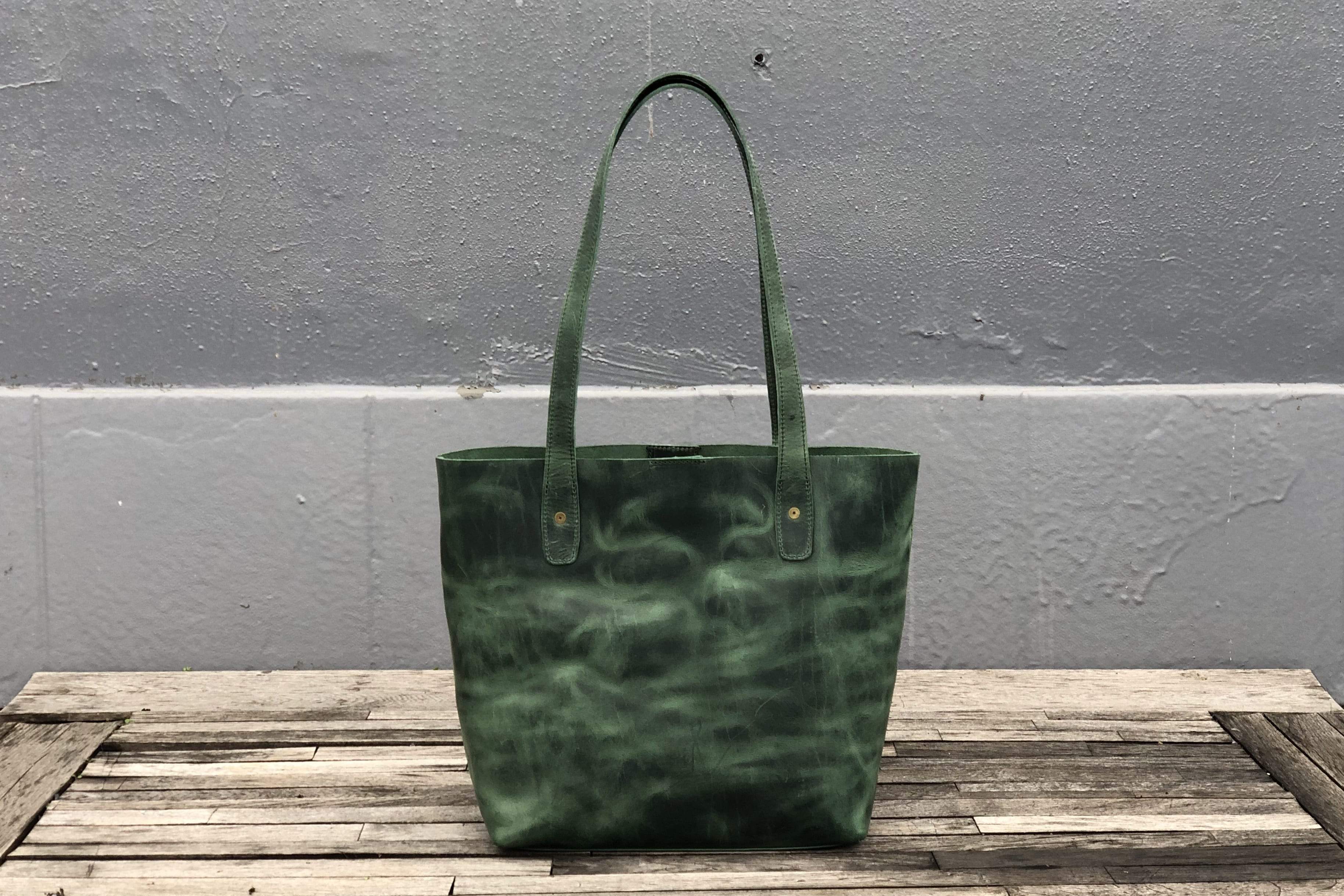 A timeless design is always in style and the Green Leather Tote bag is the embodiment of utility with a classic look of a vintage handbag. A solidly built tote bag is an everyday staple. The beauty of high-quality leather totes that utilize full-grain leather isn’t just the quality, but the unique characteristics that develop with time and use. You'll love how practical it is as a throw-all-in-tote and be surprised how easy it will be to find your keys without digging through your bag thanks to the detachable keychain. You won't stop admiring your new leather tote bag when it arrives.