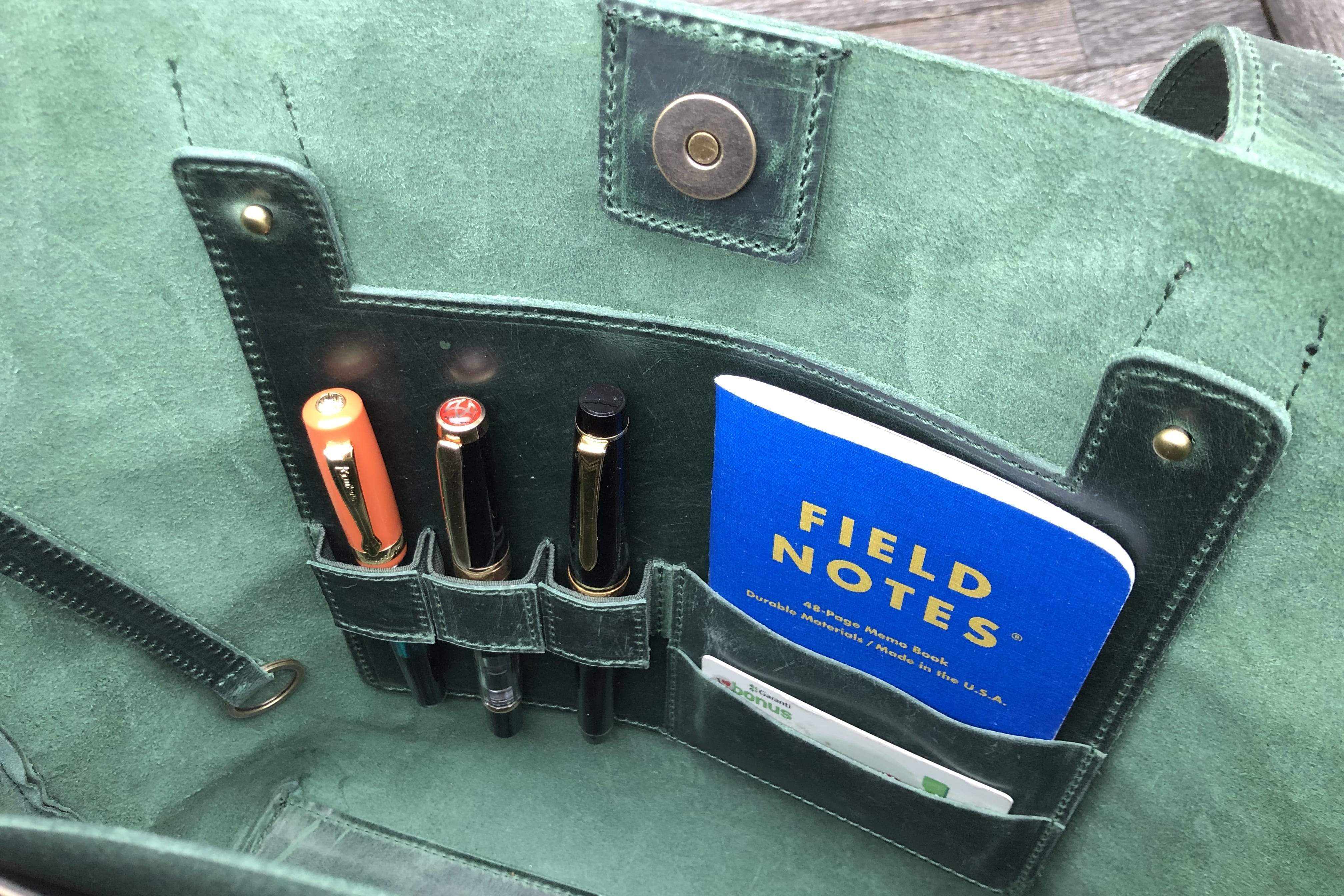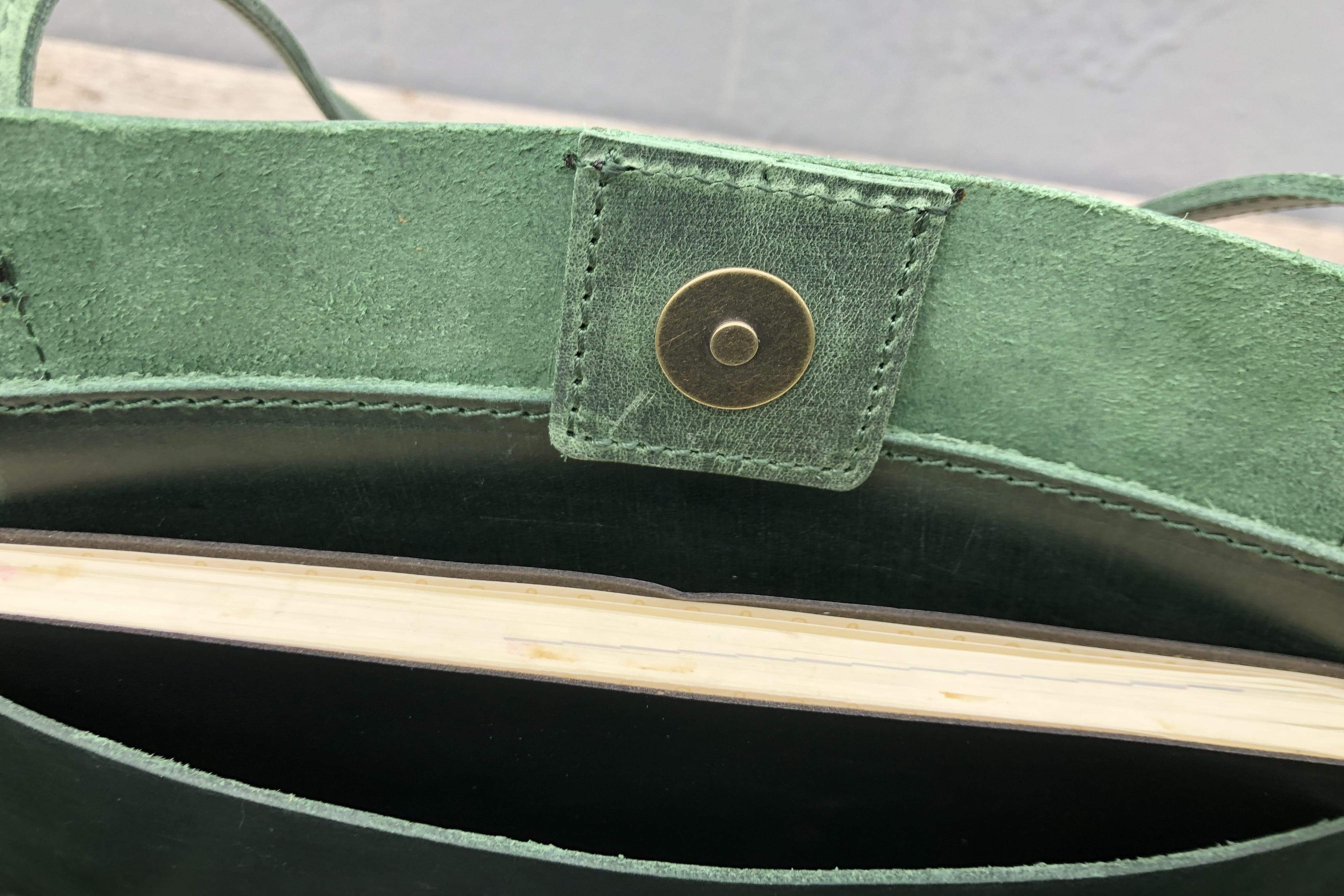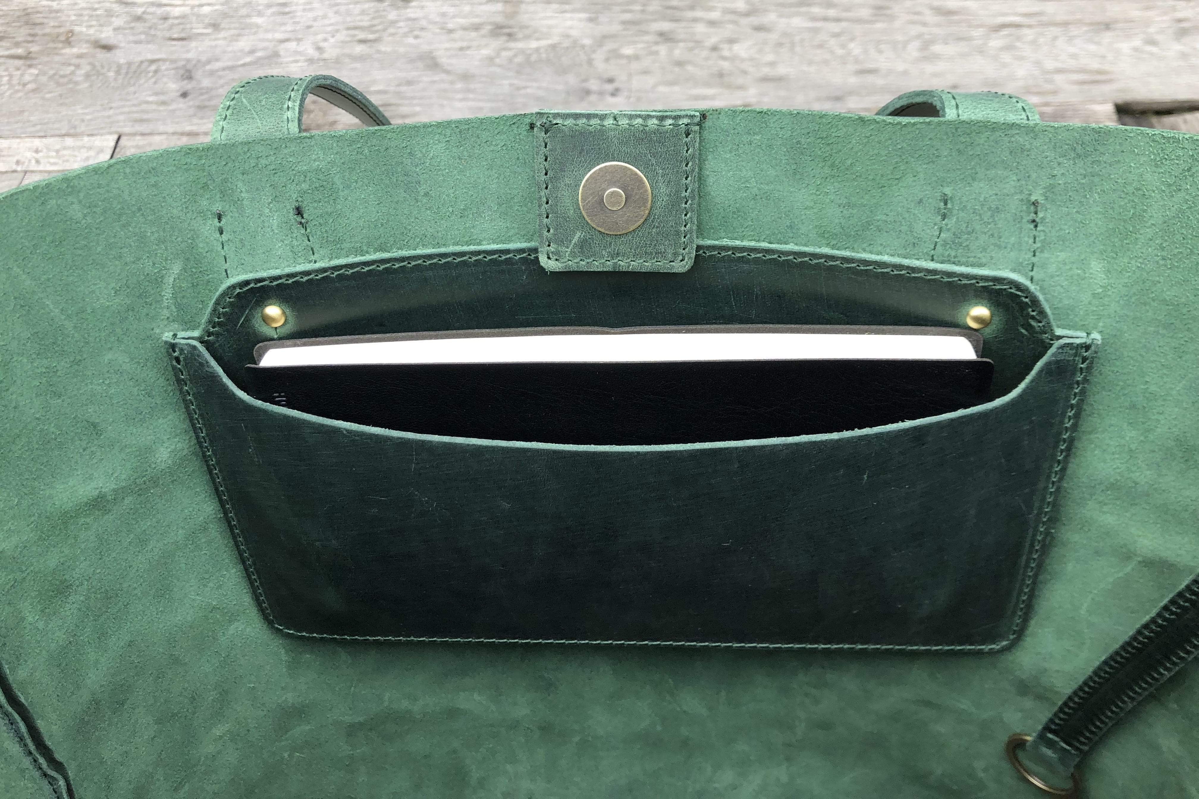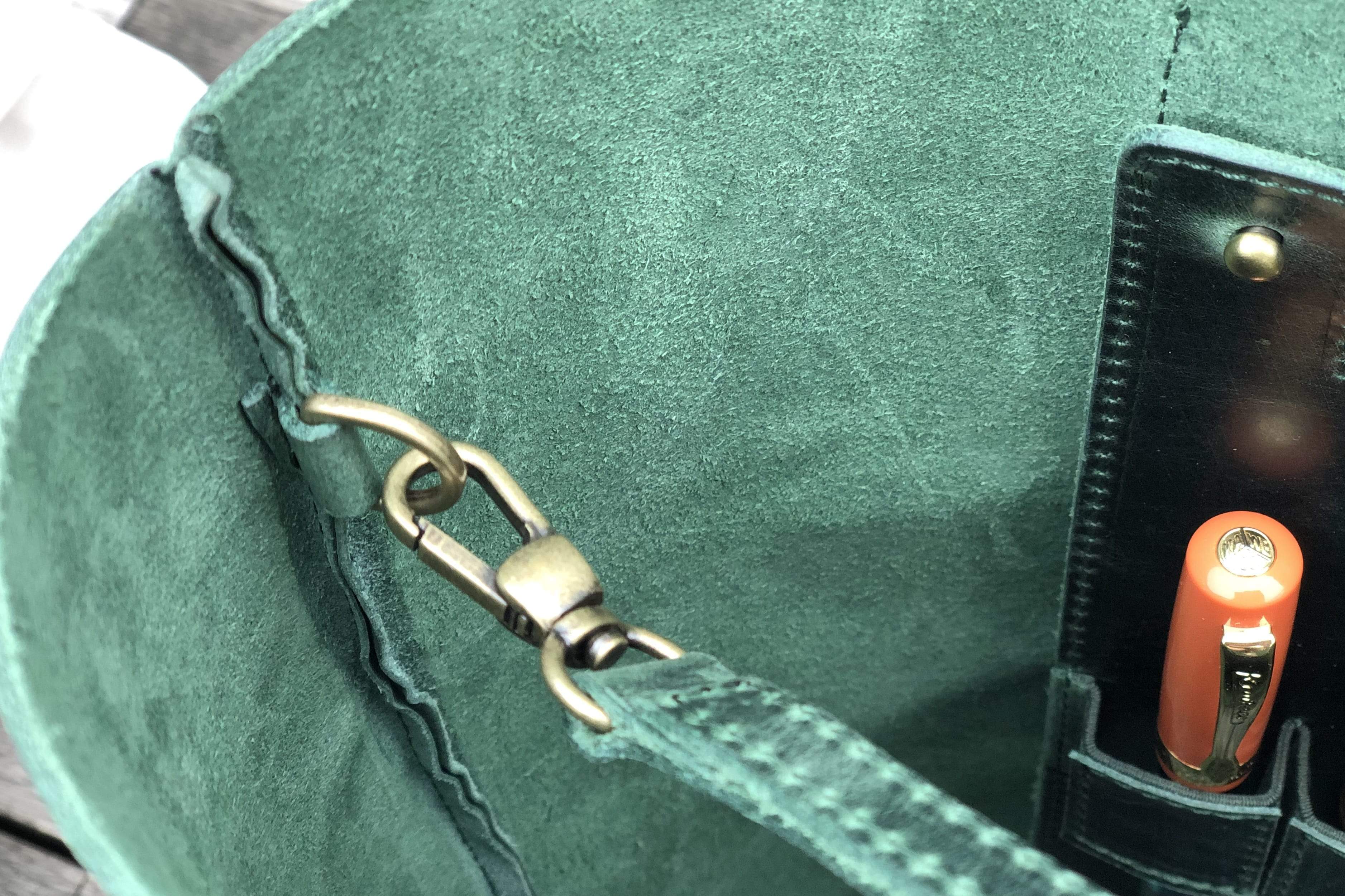 A timeless design is always in style and the Green Leather Tote bag is the embodiment of utility with a classic look of a vintage handbag. A solidly built tote bag is an everyday staple. The beauty of high-quality leather totes that utilize full-grain leather isn’t just the quality, but the unique characteristics that develop with time and use. You'll love how practical it is as a throw-all-in-tote and be surprised how easy it will be to find your keys without digging through your bag thanks to the detachable keychain. You won't stop admiring your new leather tote bag when it arrives.