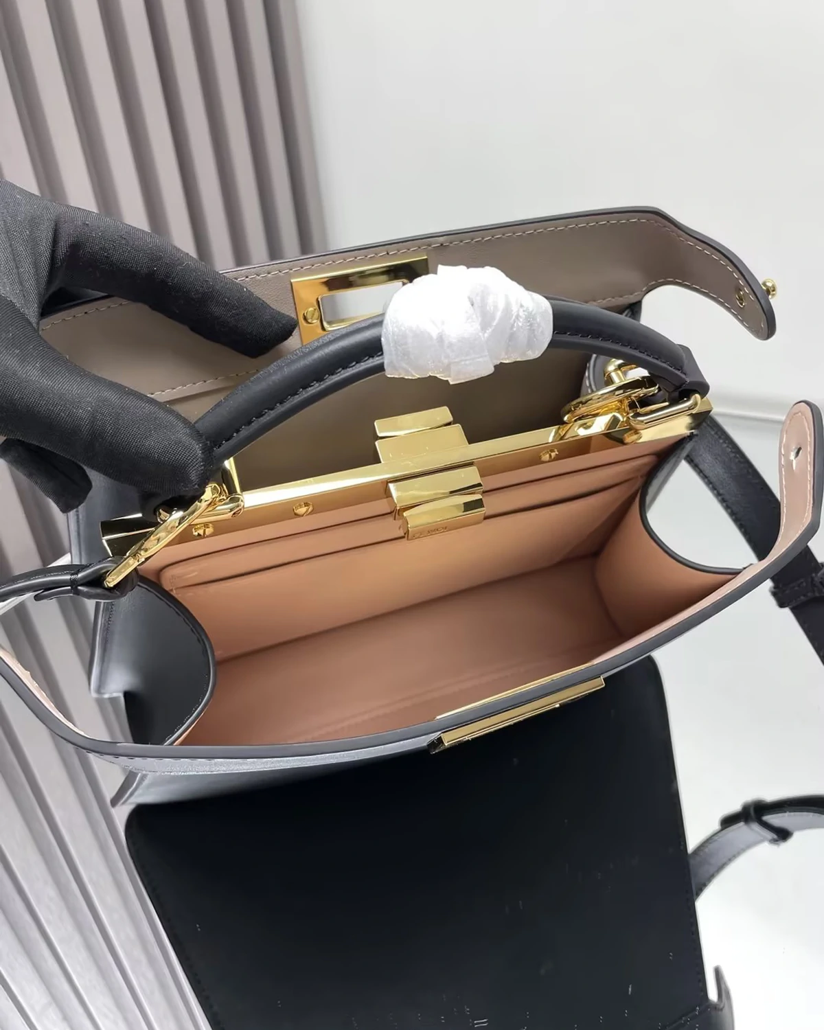 • Lining: Calfskin lining with two-tone soft nappa leather (pink & dove grey)
