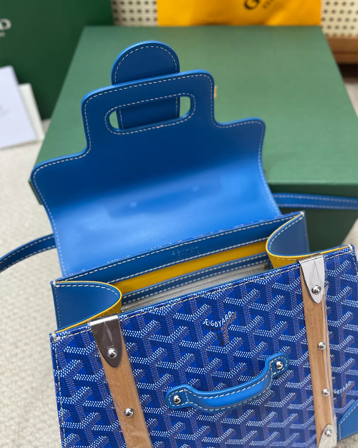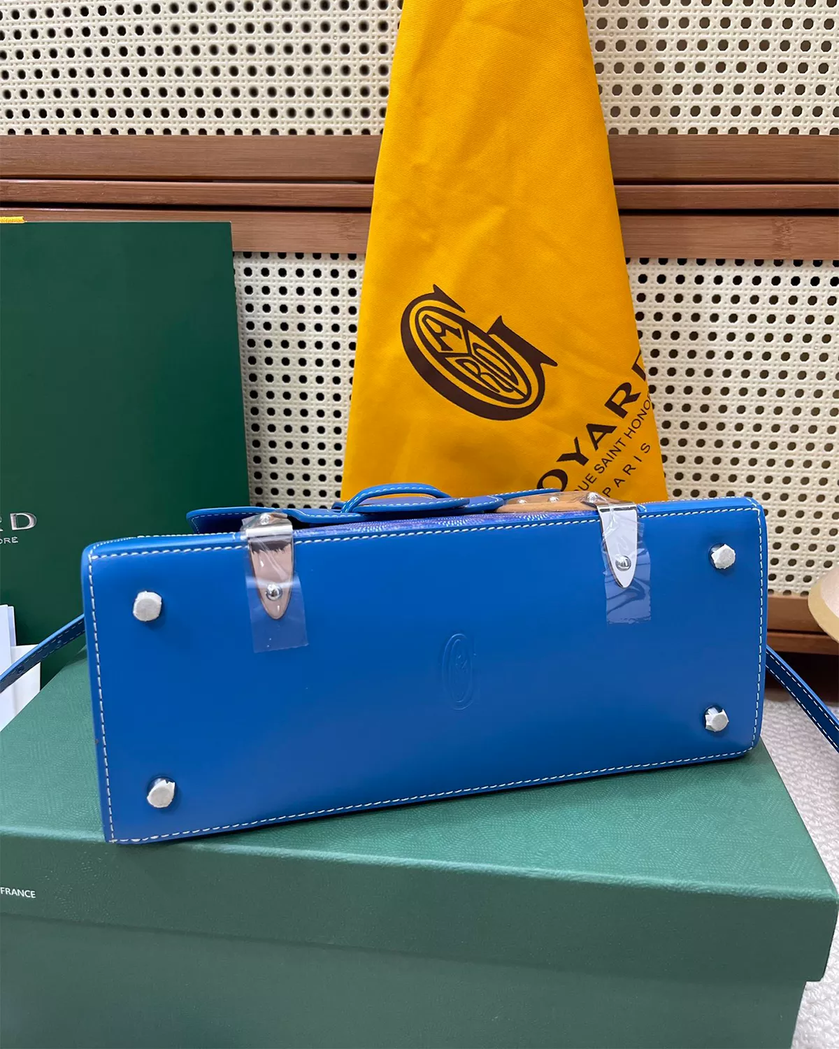 • Material: Coated canvas (Goyardine-style) & Clamecy cowhide