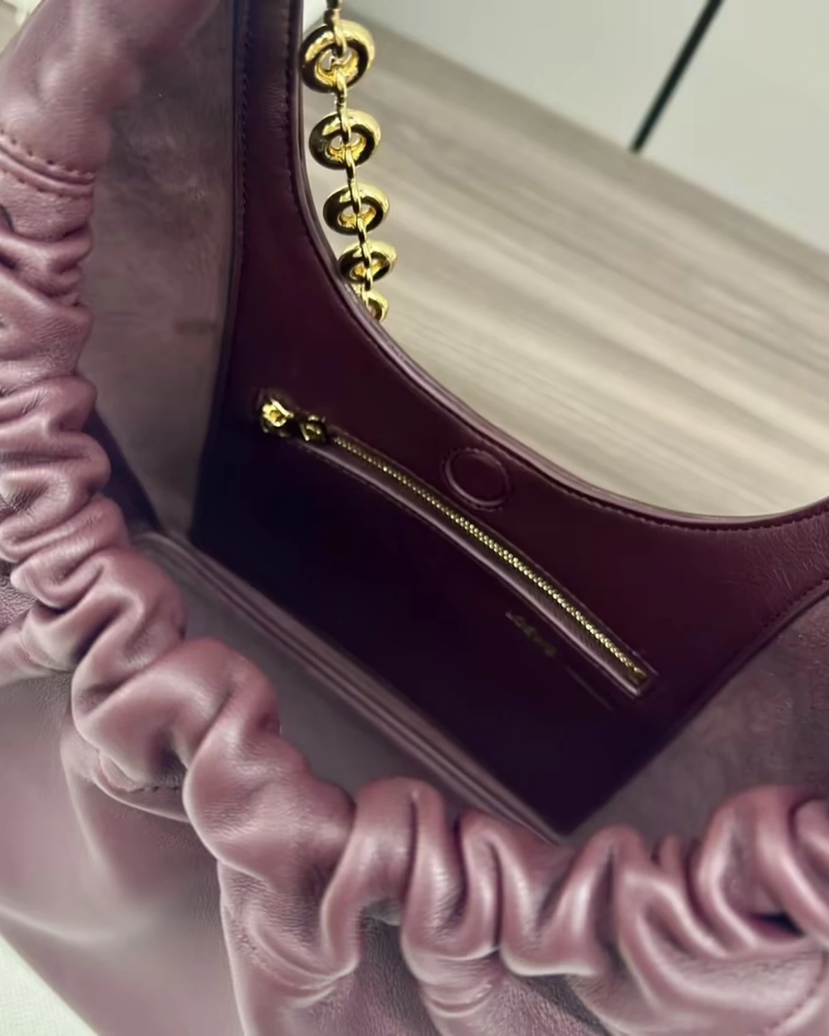 • Small Squeeze bag in mellow nappa lambskin “Dark Burgundy”