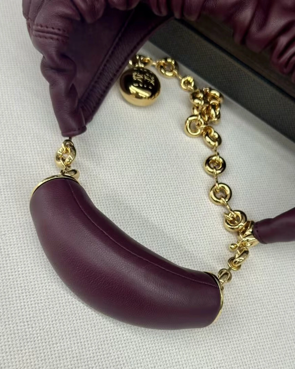 The Squeeze is a versatile design defined by a ruched body, a squeezy handle and a donut chain. This small version is crafted in mellow nappa lambskin.