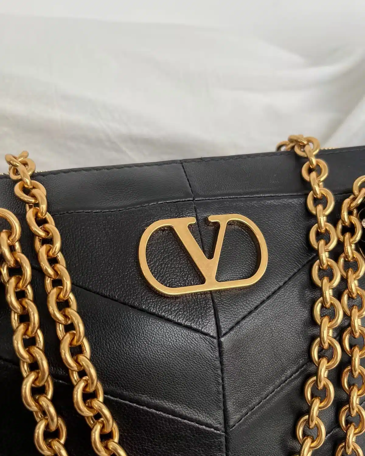 • Signature Detail: Vintage gold-tone VLOGO SIGNATURE metal accent
